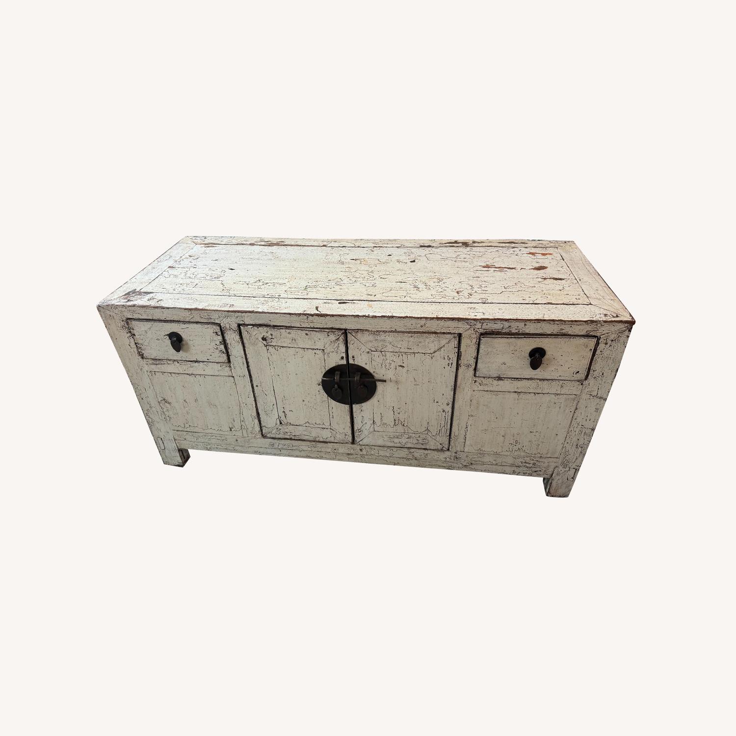 Seller's Notes:Really cool, quality white distressed wood trunk. A few stains on top, which can probably be cleaned. Sturdy and been in the family for awhile. Selling it because I am downsizing furniture to free up space at my place.