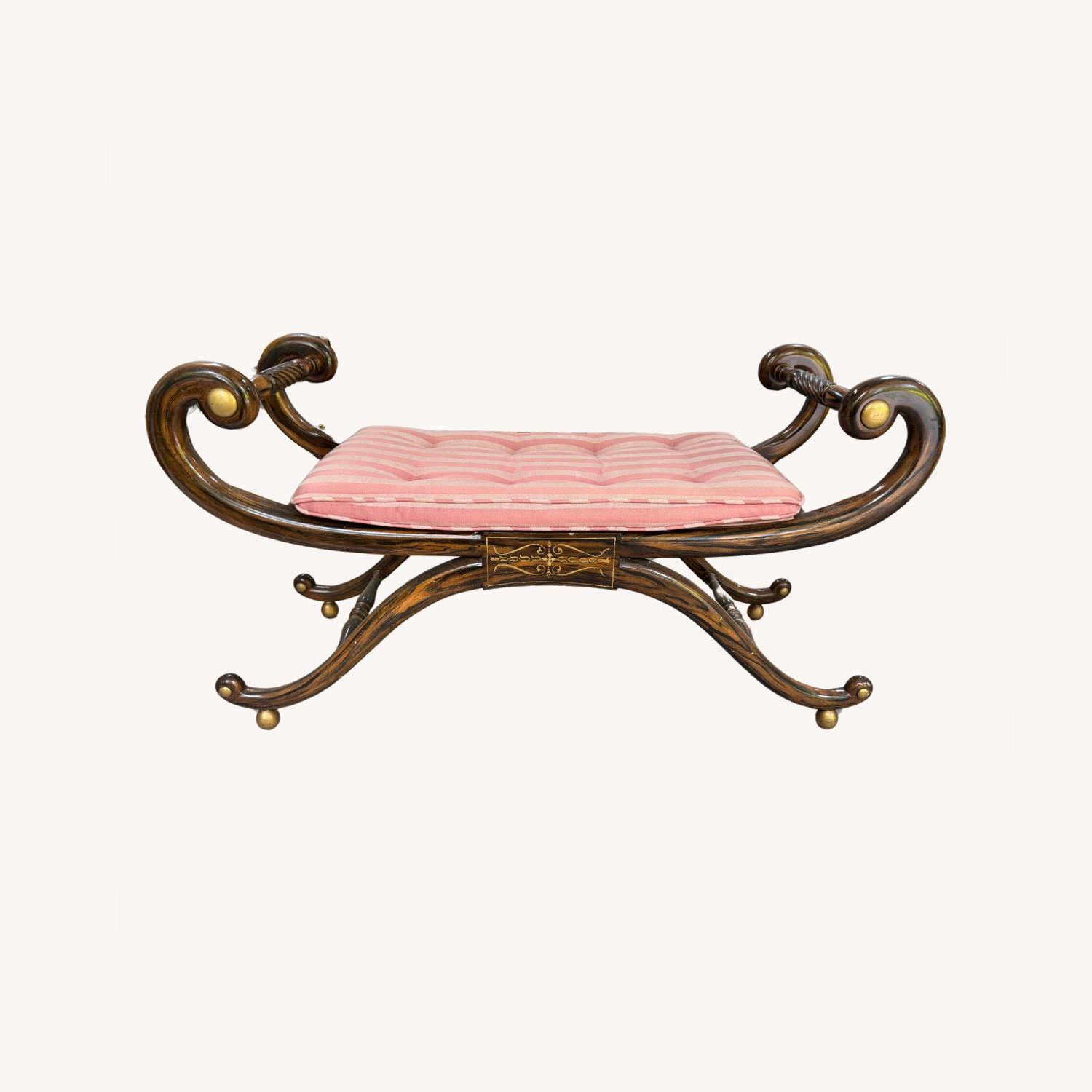 Seller's Notes:Vintage Wood Regency Bench. Cushion has stain. Otherwise in great shape