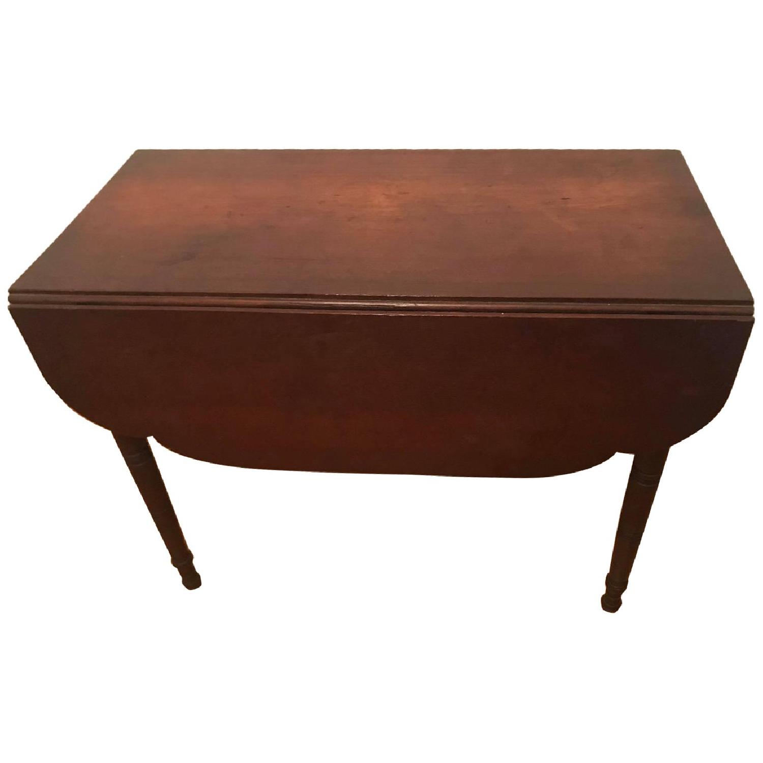 Seller's Notes:A beautiful vintage convertible side table that becomes a dining table with 2 panels. The easy system of turning the lever (shown in photo, the under-table view) to support the panels was what caught my eye. I needed a table that was multifunctional in my narrow apartment - to be a side table for most of the time...until I needed it to expand for a friendly gathering. Purchased this vintage table at Pippin Vintage Home (only the BEST place for gorgeous vintage pieces) about 2 years ago. Dimensions once the panels are up are coming soon!