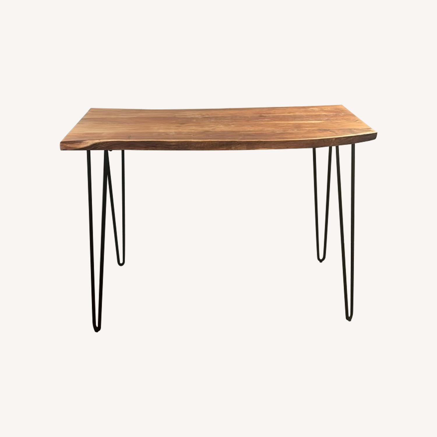 Seller's Notes:Gorgeous modern mid-century wooden table- perfect for a high top dining room experience. Originally $700. Pickup in Williamsburg. No signs of wear, only selling bc it doesn’t work in our new apt 52 inches wide, 26 inches deep, 36 inches high