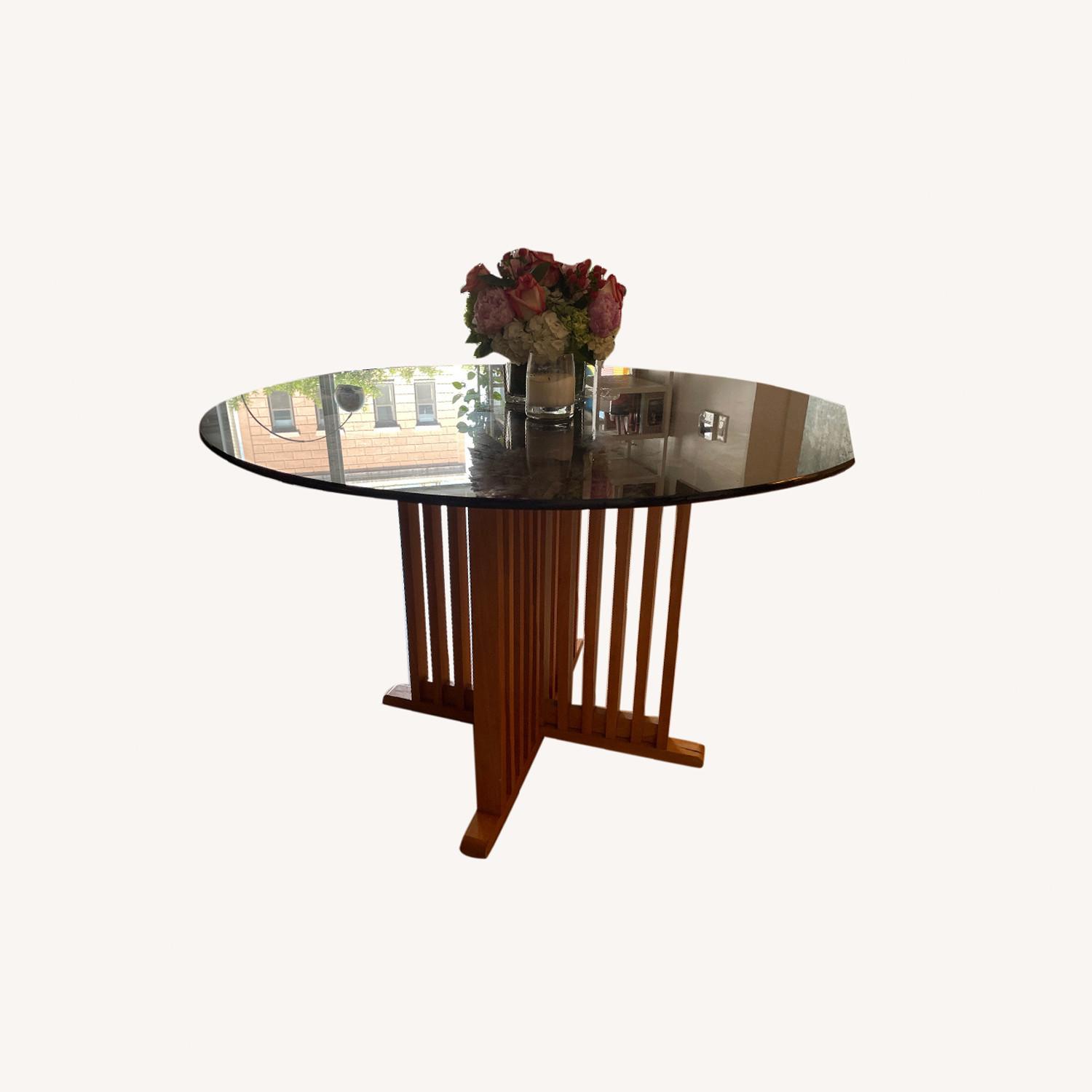 Vintage Wooden Dining Table with Stained Glass Top