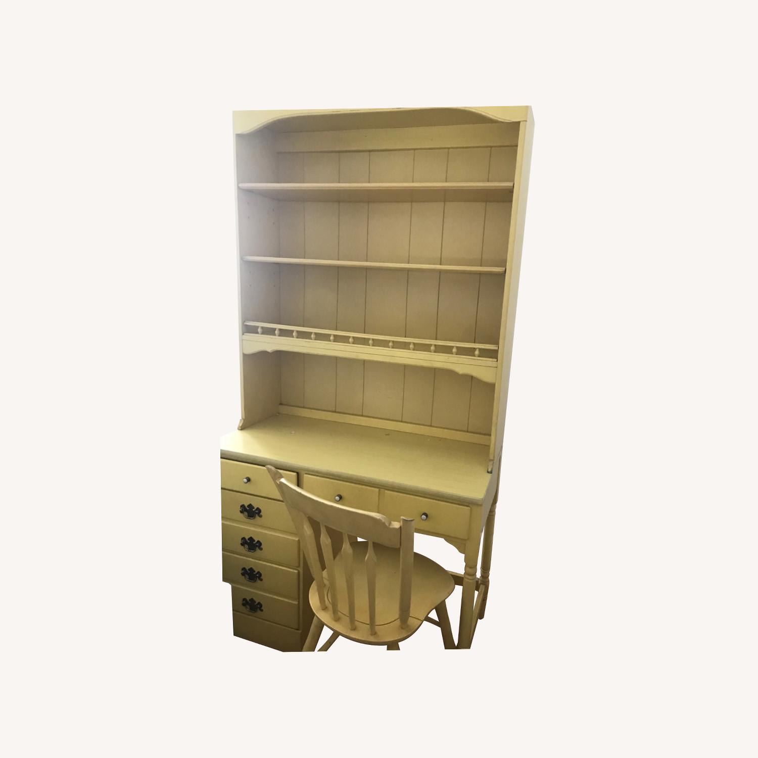 Seller's Notes:Hand painted desk with deep, spacious drawers and three shelves. Sturdy for studying, writing, working, creating. Matching chair included