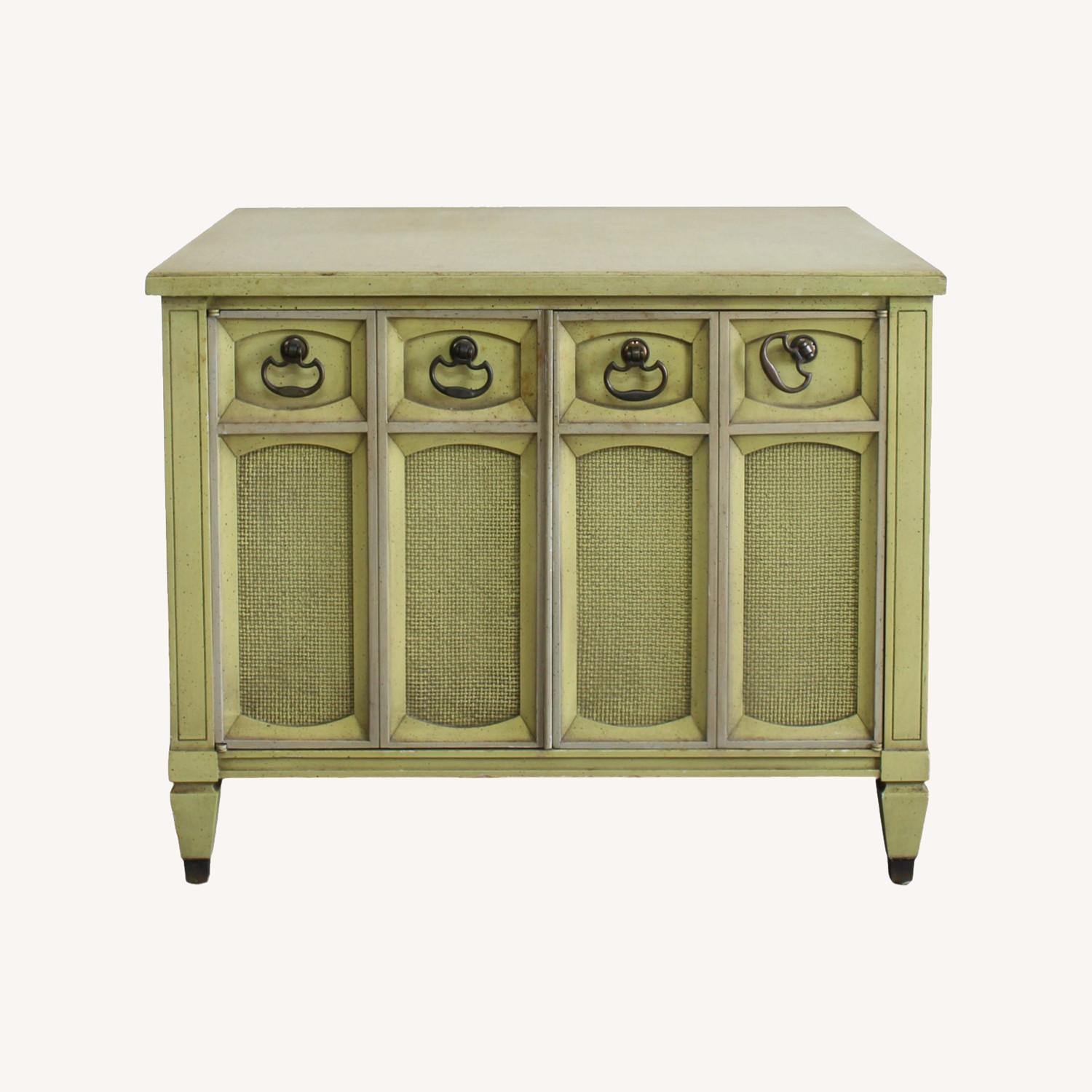 Seller's Notes:Vintage yellow side table with double door. This side table is solid built and is in great vintage condition. Dimensions; 28" Width x 28" Depth x 22" Height. See pictures and condition for reference. Good Condition, Original Condition Unaltered, vintage piece, may have some minor imperfections. (color and finish can be modified per client’s request) If you have question, please let us know, thank you.