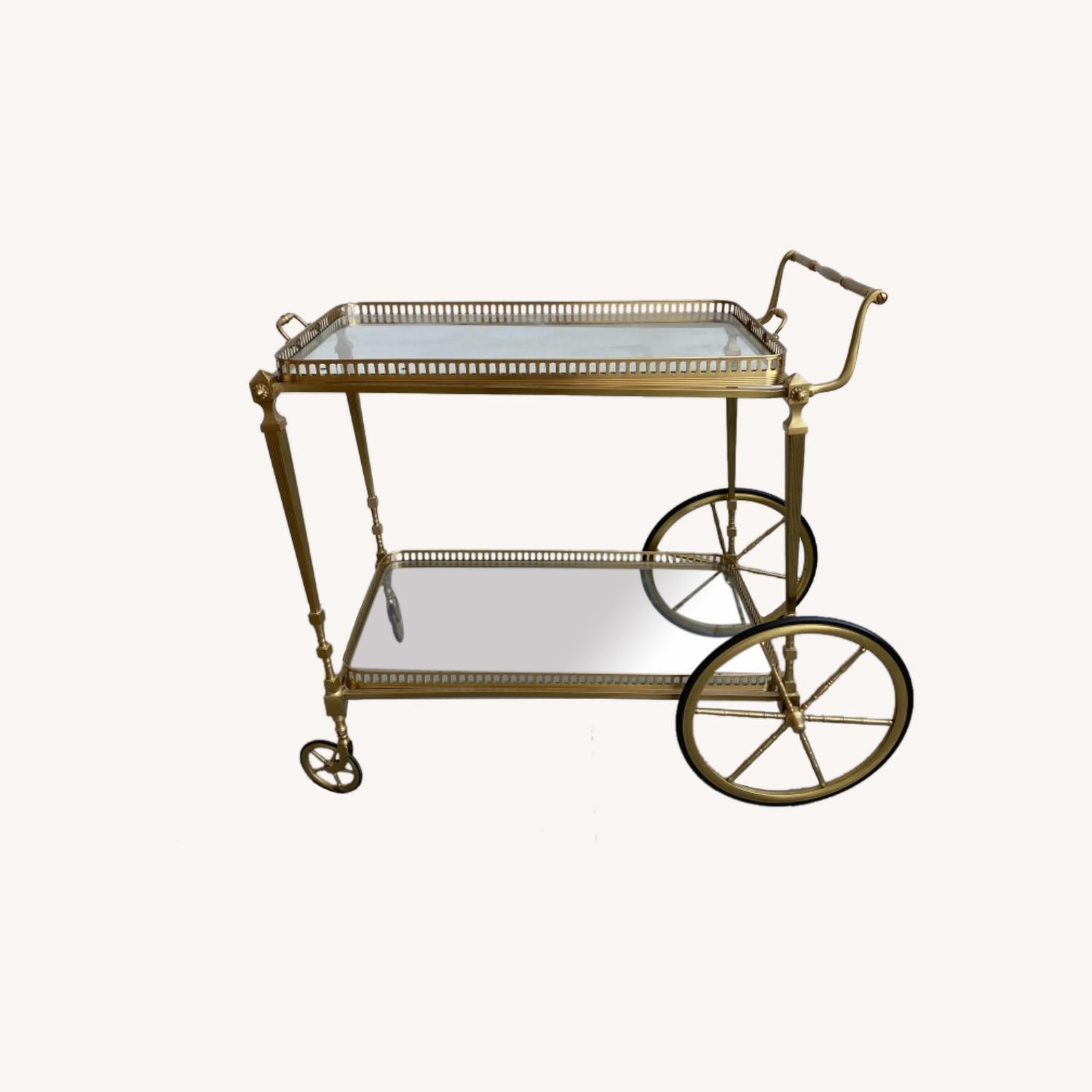 Seller's Notes:Modern Italian bar cart. Brass and Glass. Top tray is removable to be able to serve. Very stylish.