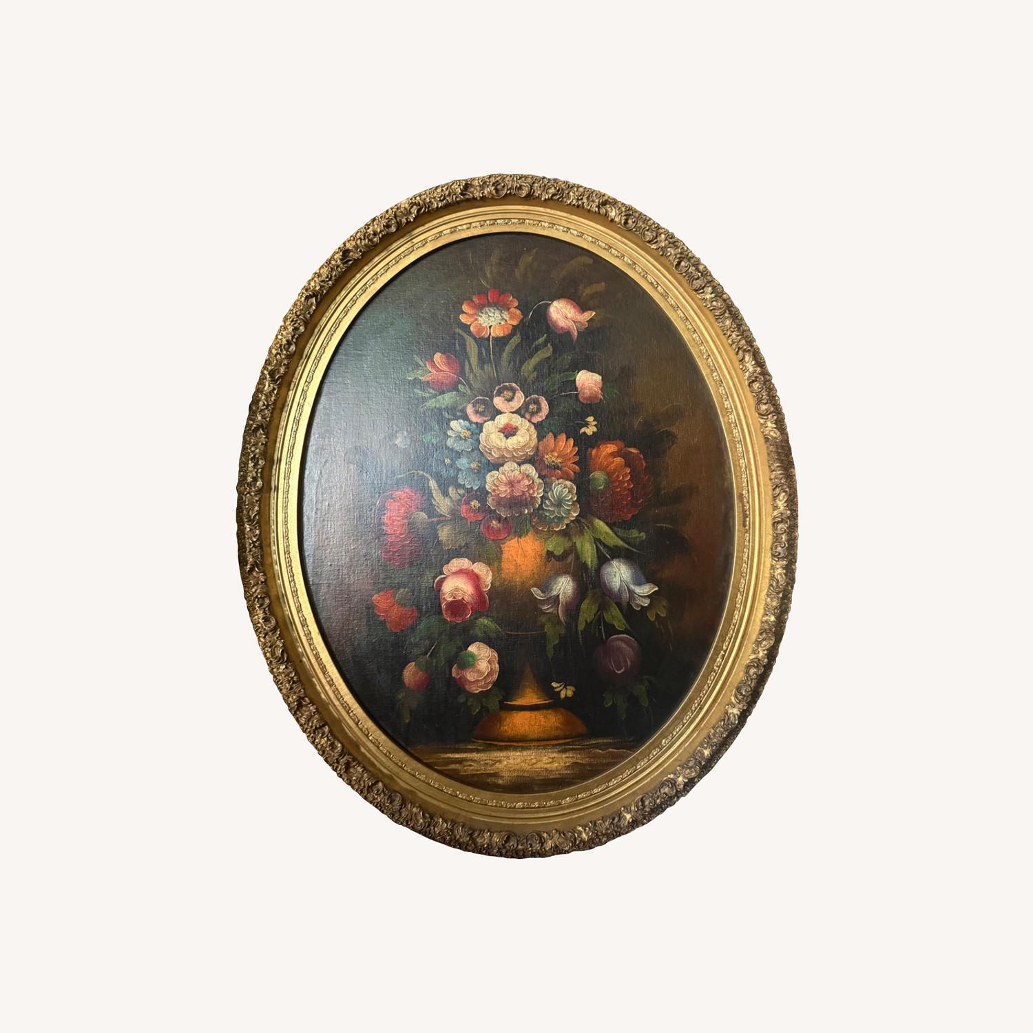 Seller's Notes:33 inches long and 27 inches wide not signed Wood, gold leafed frame Painting is a oil painting Very moody painting, definitely a statement piece.