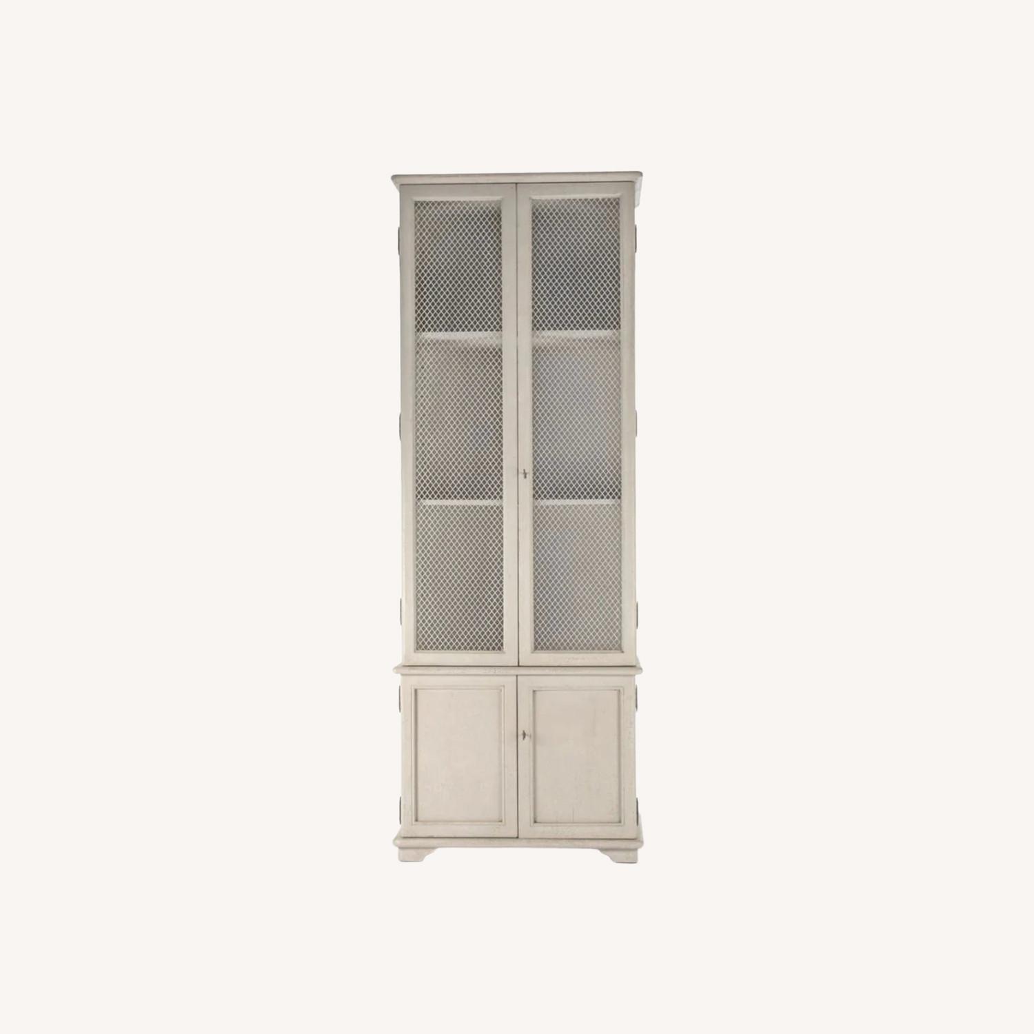 Seller's Notes:A modern take on French Country classic, this charming cabinet holds dishes, glassware or collectibles and books behind two tall wire mesh doors. This cabinet is a prime example of a bibliotheque with two adjustable shelves and a closed cabinet below. Its tall, slender scale and refined simple lines would blend beautifully in both a traditional and contemporary setting.