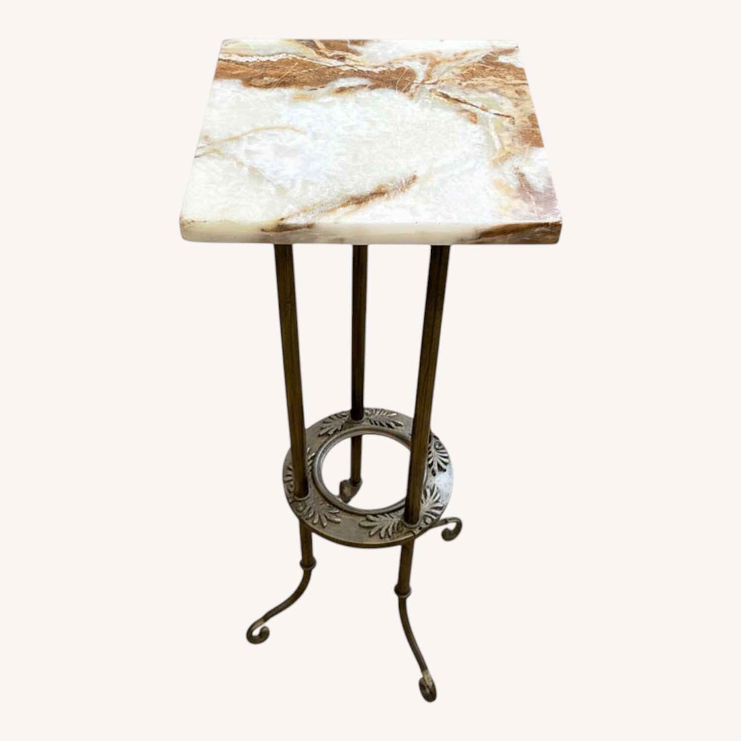 Seller's Notes:Antique marble top side table with ornate brass legs. Smoke and pet free home.
