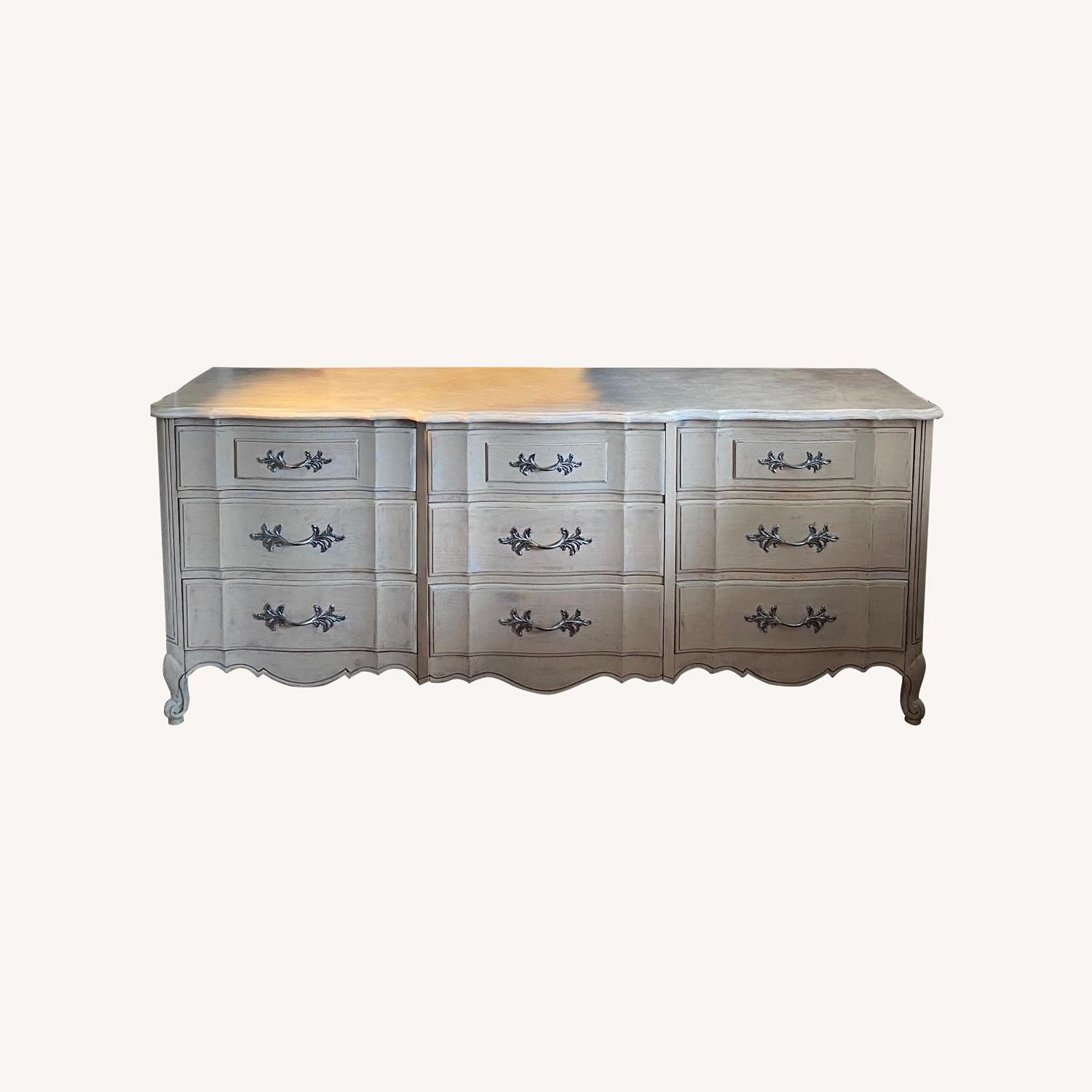 Seller's Notes:Beautiful Vintage Triple dresser has been in the family for 61 years. It’s a lovely addition to any room- bedroom, nursery, living room, dining room. I sanded and recently painted the dresser in a natural linen color blended white parchment color on the top to give it a beautiful washed look for a chic cottage beach aesthetic. Original art work also for sale: $1,500 Painted by -seller Dresser sold seperately for 4,000. Both dresser and Original art total price $5,500. Includes white glove delivery price. Has not been in the house with the dog for long - since September-approximately 4 months - I will wipe off before picked up for delivery. And will be covered during the wait.