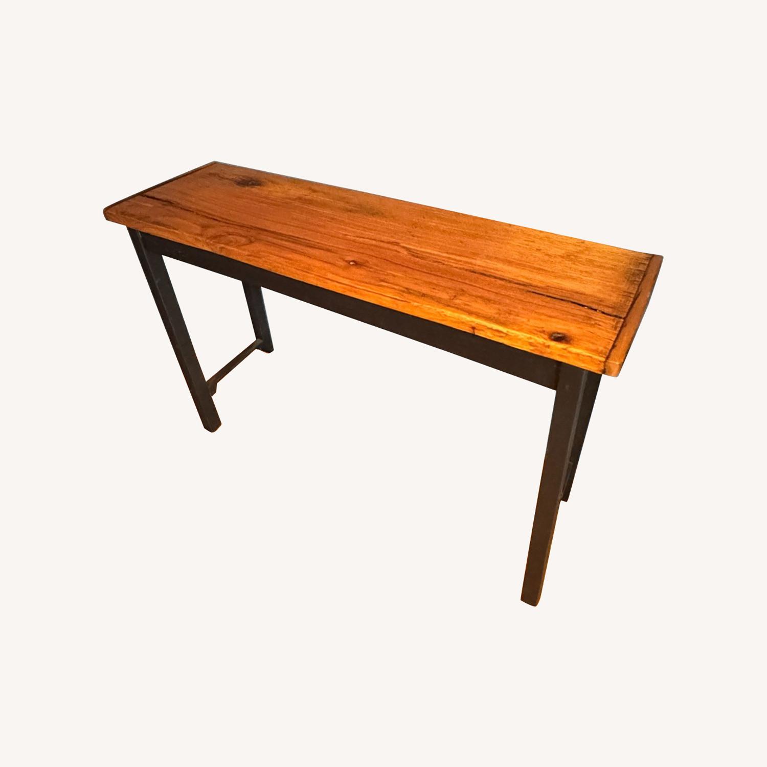 Seller's Notes:Vintage/Antique reclaimed wood console table purchased from a vintage store in Washington, DC. Beautiful in person. Works great as a console in a hallway, foyer, or dining room. Wood stain has held up very well, making it easy to clean.