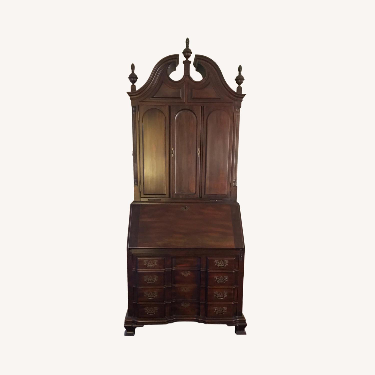 Seller's Notes:This lovely secretary has been a family treasure and centerpiece in a large 100-year old home. Primarily used for display and book storage. It has been situated in the same place for 50 years from delivery through today. The fold out desk has never been used for a surface for writing, so no handwriting indentations exist. Perfect for laptop surface and compact for today's office at home.