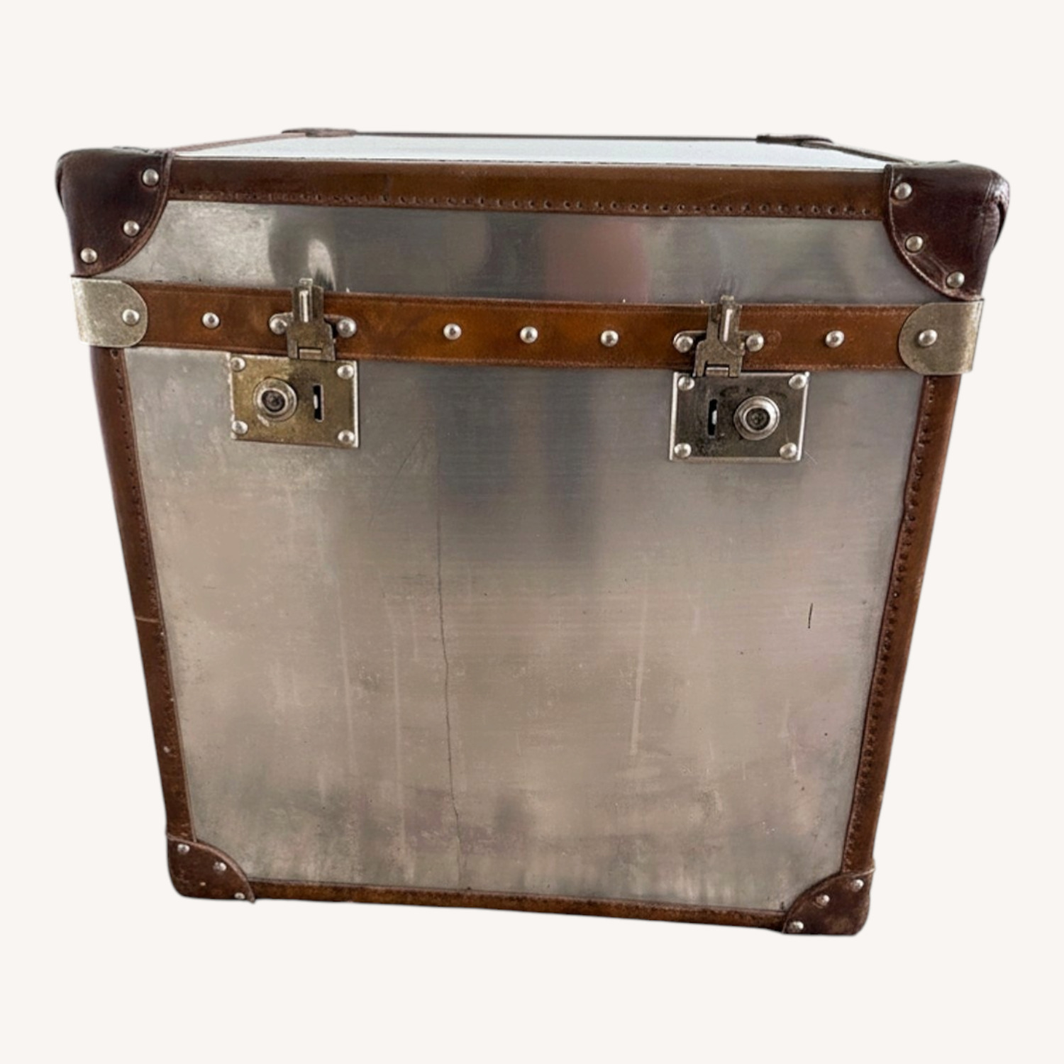 Seller's Notes:Beautiful Timothy Oulton designed Bond St. London storage chest. Great condition. https://www.timothyoulton.com/us/tables/side-tables/paris-trunk Stainless steel plus leather trim.