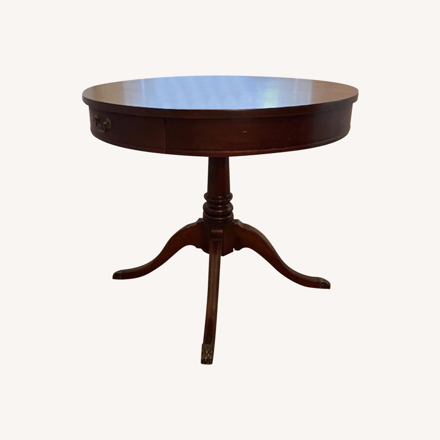 Seller's Notes:A pedestal with fluted legs which terminate with antique brass lions paw feet-One drawer