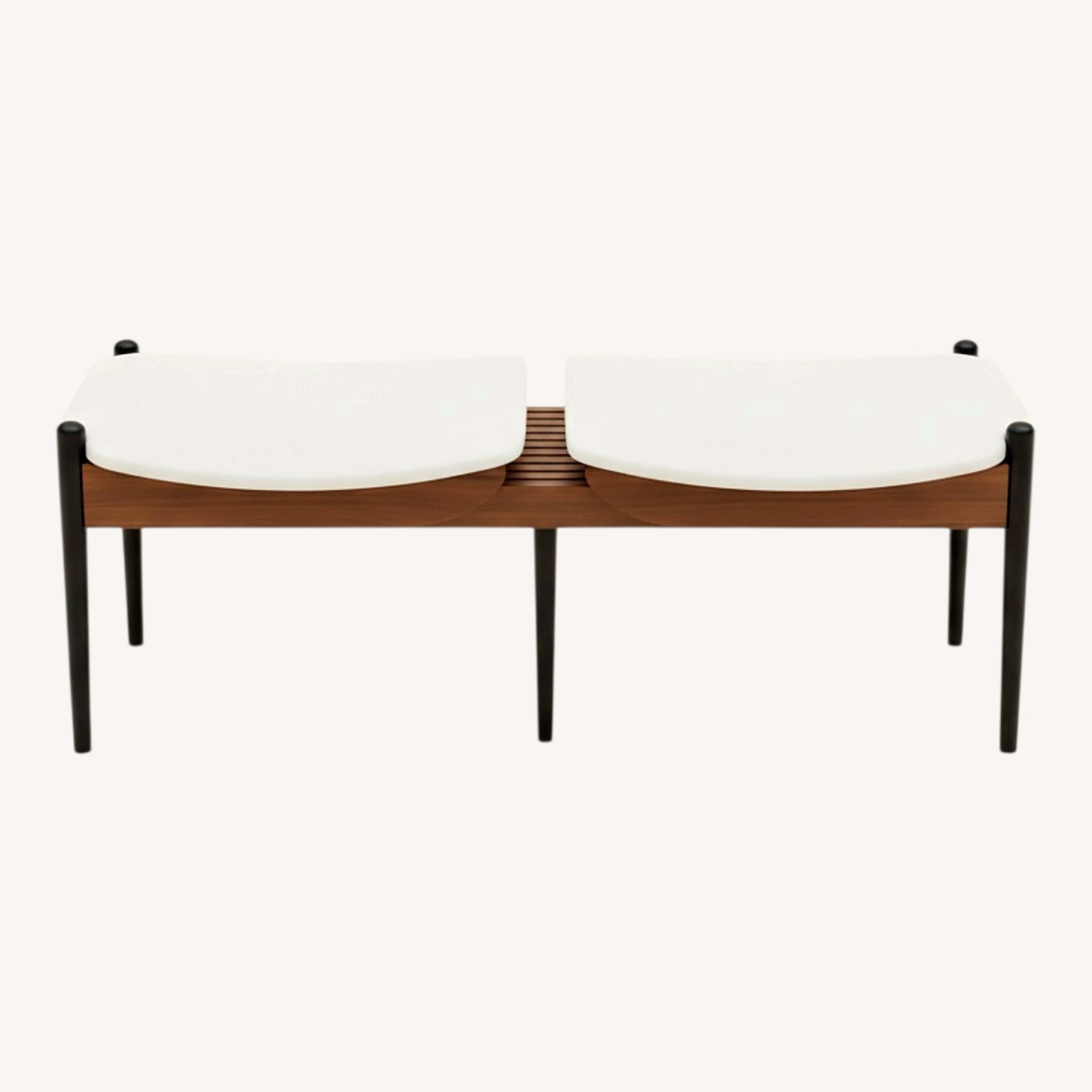 Seller's Notes:Arthur Umanoff Expandable Bench 1960 Condition: age appropriate wear, vintage finish worn, scuffs/scratches, edge wear, discoloration, minor tears/punctures,see photos.