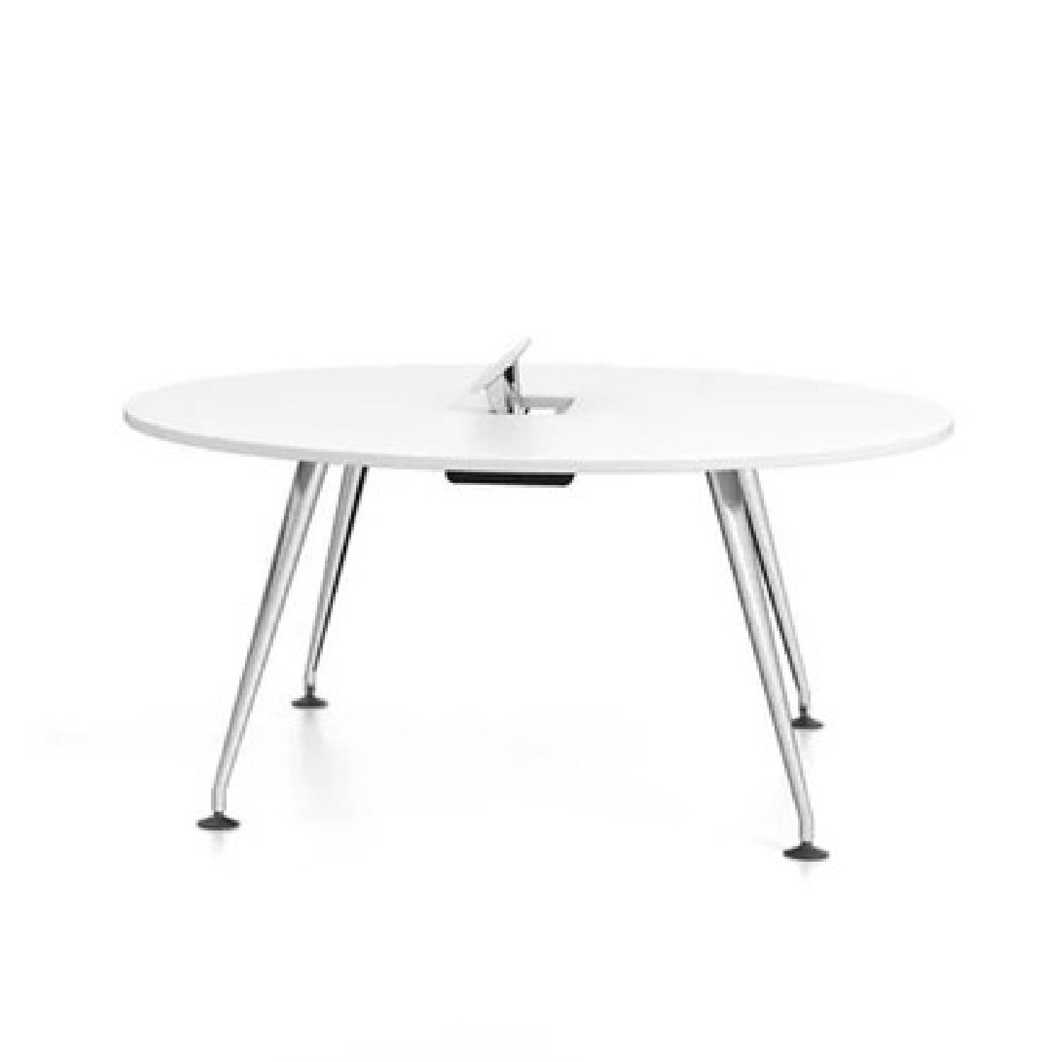 Seller's Notes:Beautifully modern table by renowned designer Alberto Meda. Distributed by Vitra, this piece was designed for his simple nature, and ability to focus the room. It would look ideal in an office, although one could make the argument that it was made for any environment. Its heigh is 28 3/4 inches, while its diameter is 55 1/8 inches. Originally sold at a price of nearly $6,000, this piece although used, is still with charm, and youth. That price accurately reflect the importance of the designer, the almost-new look of the table, as well as the company that created it. Thank you.
