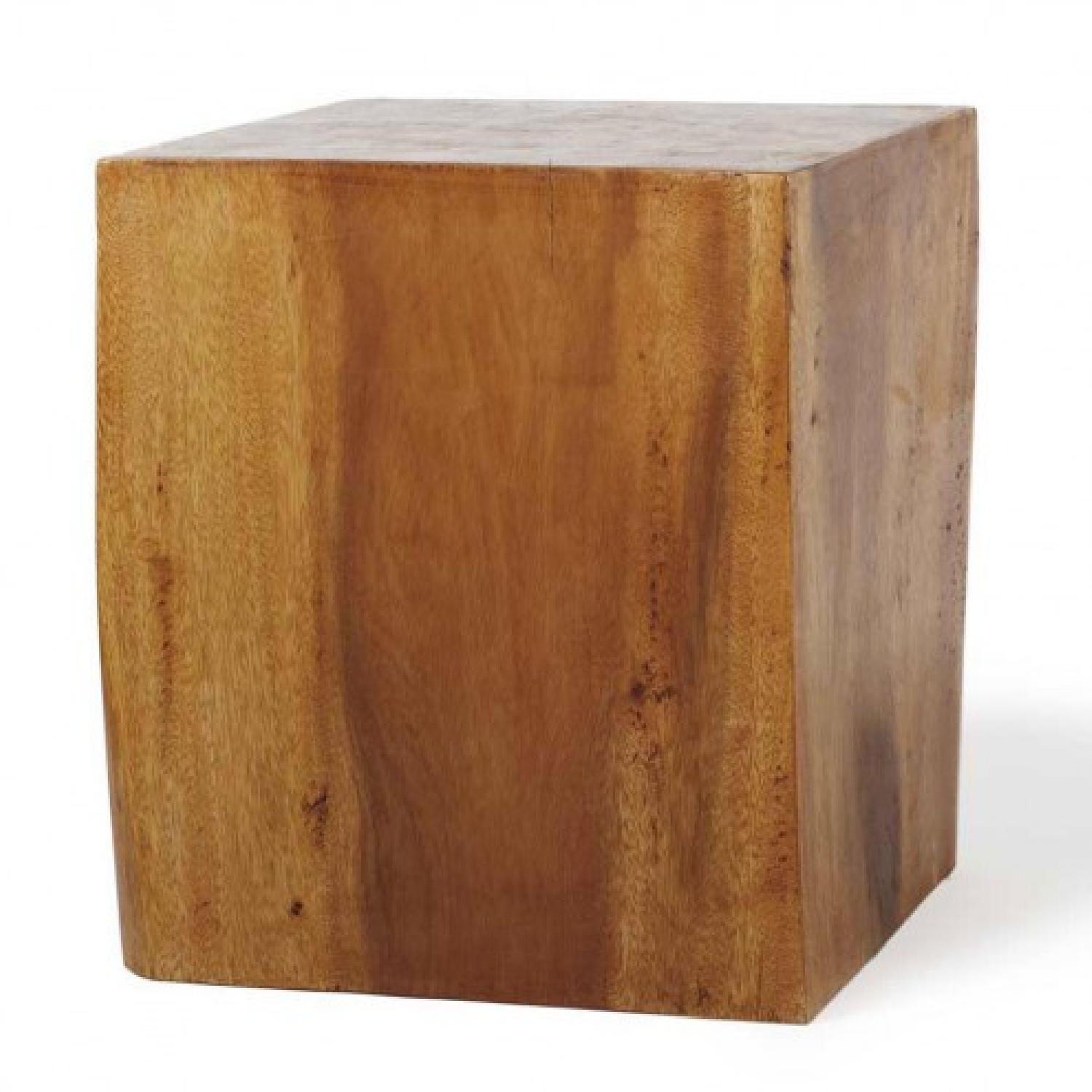 Seller's Notes:Scratches on top surface Our artisans sculpt the trunks of sustainable monkey pod trees to create these versatile, lustrous cubes from a single piece of wood. They fill the need for surface space beside a bed, chair, or couch. When grouped they also serve as multi-use tables. Add a cushion if you like, and they become stools. The carvers hollow the trunk's interior and leave enough dense wood where it matters to make them strong and sturdy.