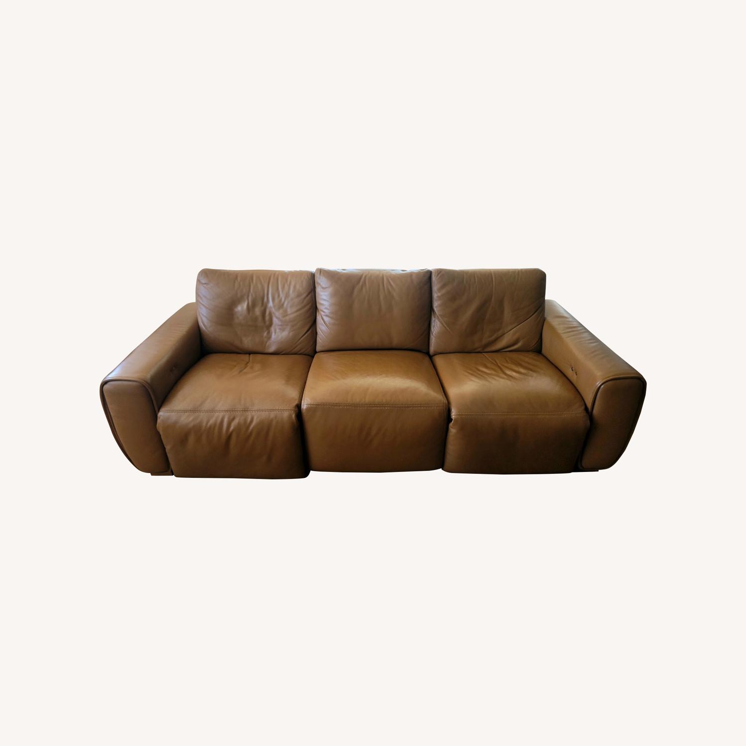 W. Schillig USA Cognac Auto Reclining Leather Sofa