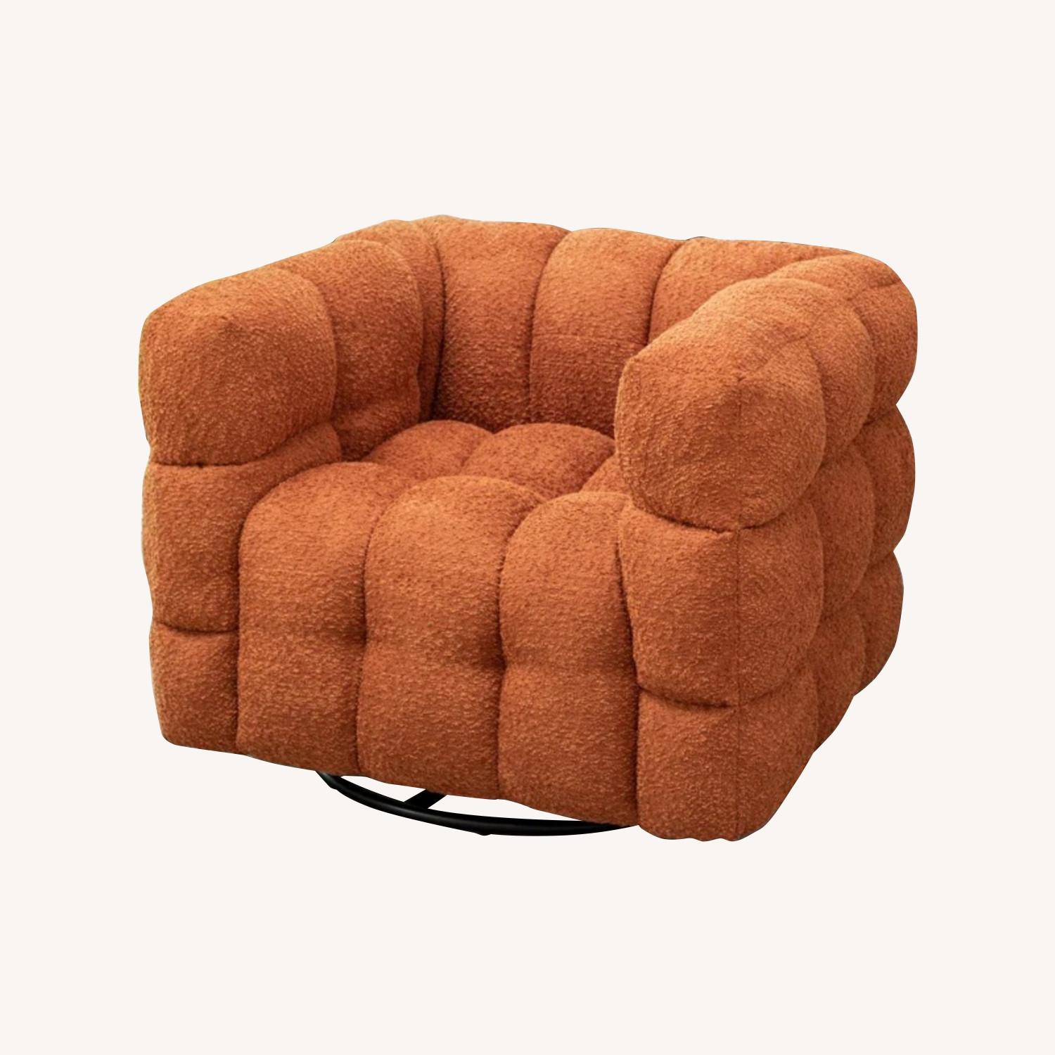 Seller's Notes:LIKE NEW Modern Tufted Swivel Barrel Armchair in a rich orange color