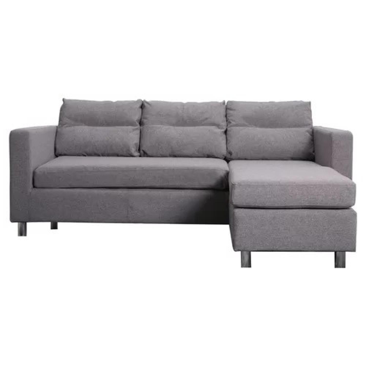 Seller's Notes:This set includes the sofa and ottoman and features three interchangeable arrangements. Cushions are firm, foam-filled, & upholstered in 100% polyester. Ottoman is removable and reversible. Both sofa & ottoman sit on chromed metal legs. Less than a year old, in good condition. Mild fabric snags from a cat on 2 corners.