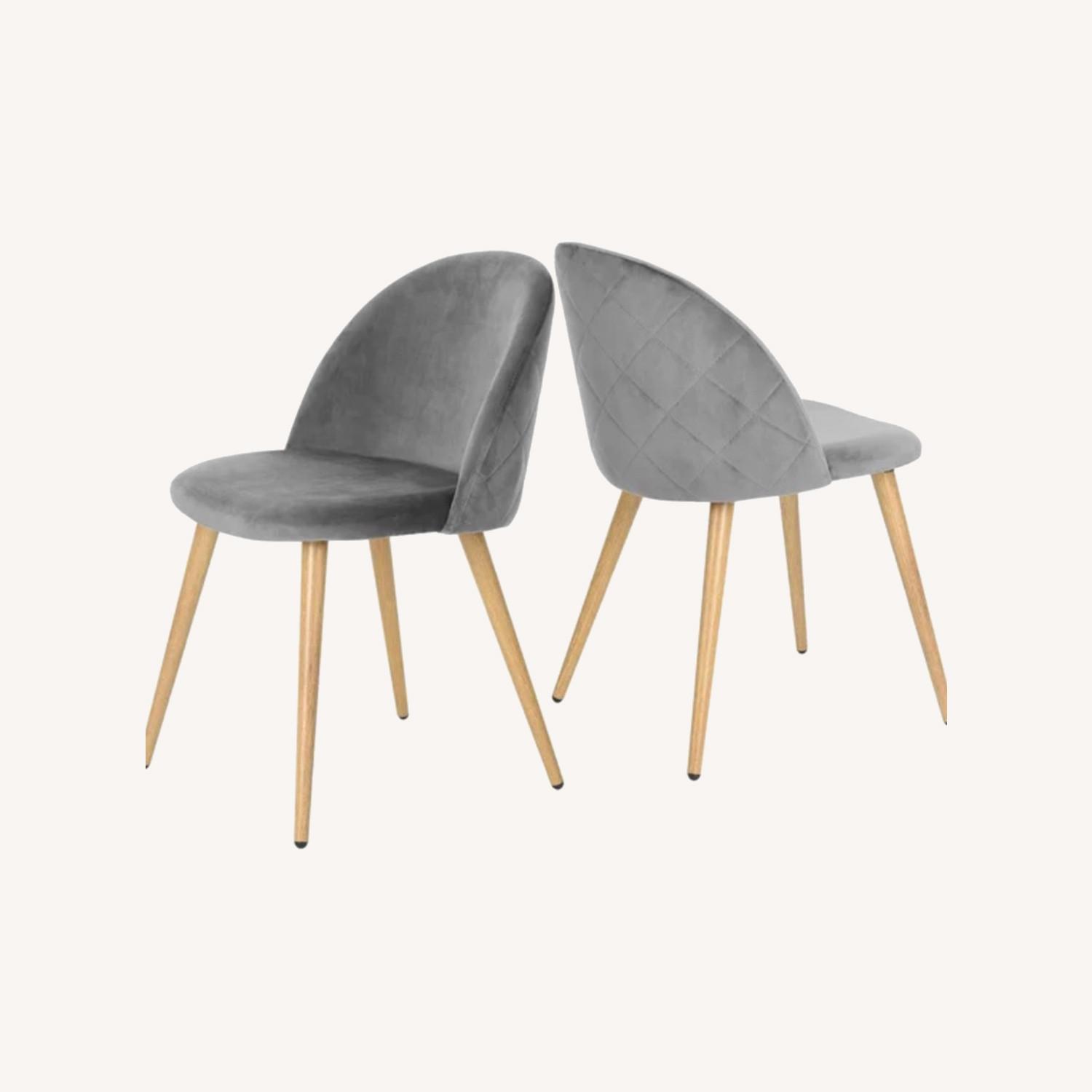 Seller's Notes:Velvet gray sides chairs/ dining chairs with light oak natural wood legs. Set of 4