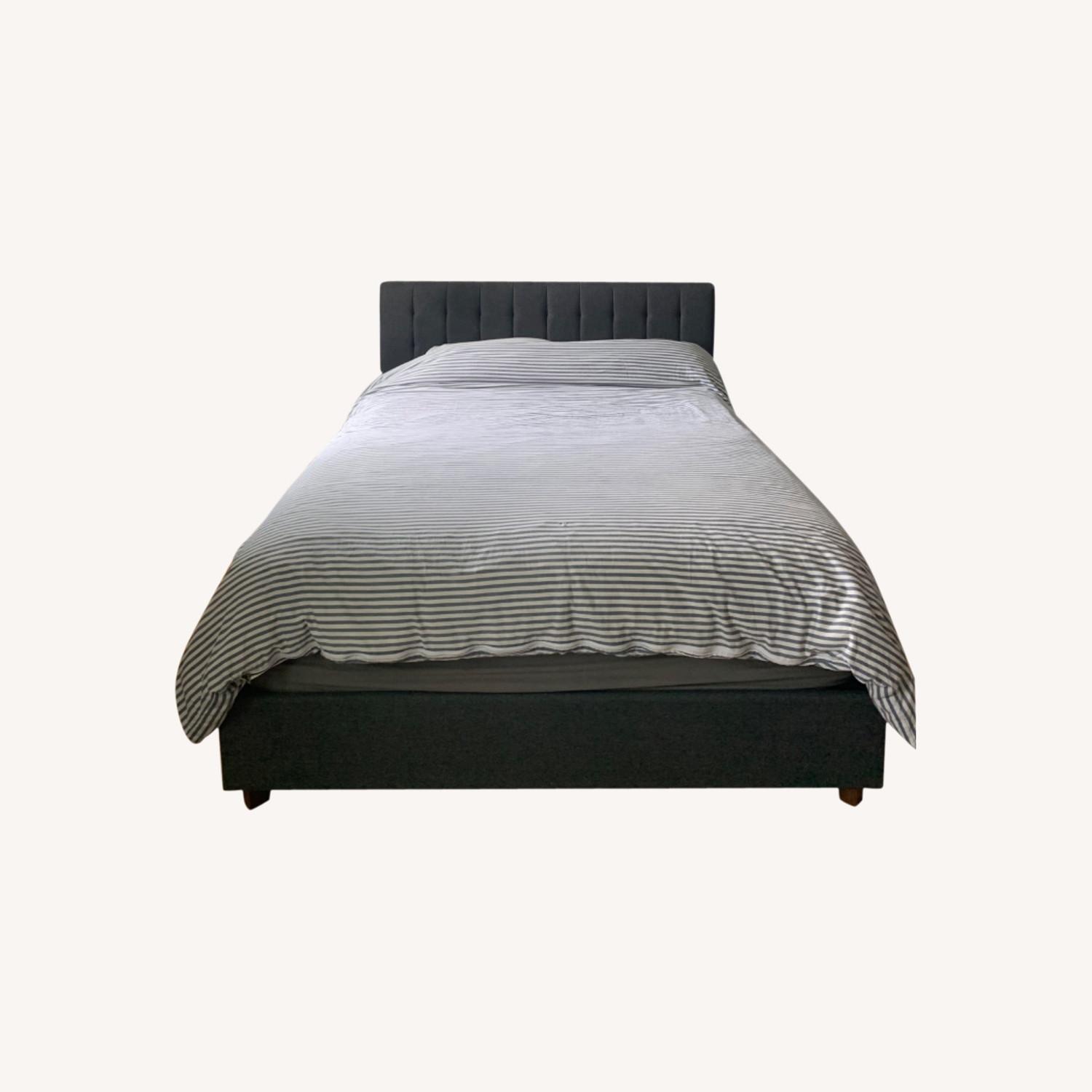Seller's Notes:Wade Logan Queen Size Bed frame. Like new, in great condition. Selling it because need a king size bed. The Aedyn upholstered bed has a versatile contemporary style that oozes comfort and elegance. The Aedyn linen upholstery and button-tufted details make you want to cozy up in a blanket and spend your Saturday reading a good book. Easy to assemble, the wood frame is reinforced with a bentwood slat system and metal center legs to ensure this bed will stay with you for years to come. The slat system also ensures that your mattress will get the breathability it needs by allowing air to pass freely beneath the bed. By this, your mattress will stay fresher longer. Mattress sold separately. Available in multiple color options to please both the ones who want a pop of color and the ones who are looking for neutral tones. Offered in multiple sizes and finishes. No additional foundation or box spring is required. With the Aedyn upholstered bed, you get a centerpiece to your bedroom that is simple, yet stylish – perfect to blend into any bedroom décor.