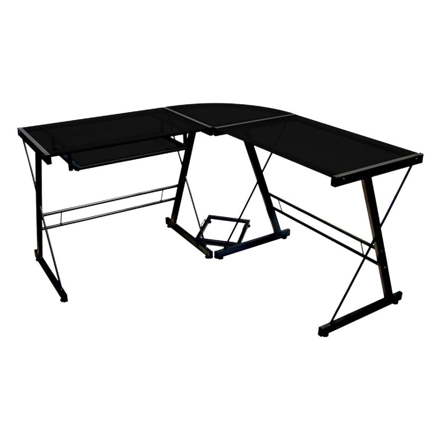 Walker Edison Modern L-Shaped Tempered Glass Computer Desk