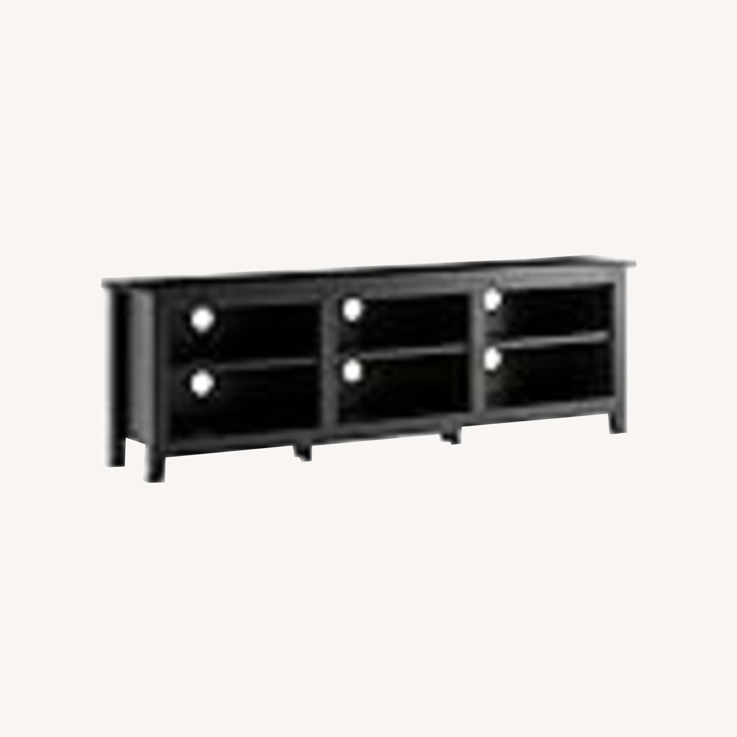 Seller's Notes:Walker Edison Wren Classic 6 Cubby TV Stand for TVs up to 80 Inches, 70 Inch, Black Dimensions: 23.5” H x 15.75” D x 70” L, Open storage cubby: 7.5” H x 14” D x 20” L Top surface supports up to 200 Ibs. and shelves support up to 30 Ibs. each 3 adjustable shelves for customizable organization Supports TVs up to 80” and 6 cord management ports keep cables tidy