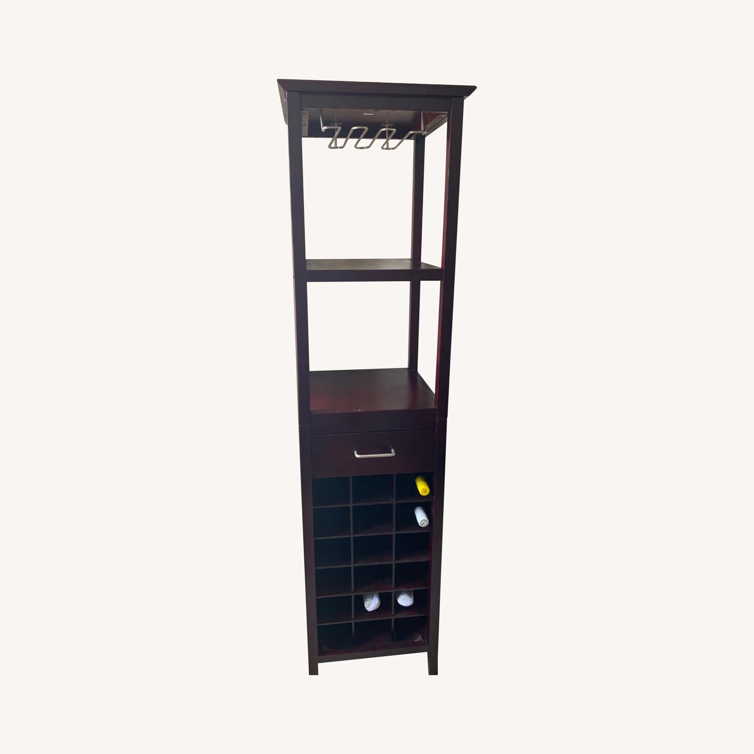 Seller's Notes:Bought this wine tower a few years ago and it always drew guests' attention in a positive way. We are moving and unfortunately this is not coming with us but it is still in good condition. The tower is made of solid wood and has a cherry colored finish. Holds 12 wine glasses and weights 45 pounds.