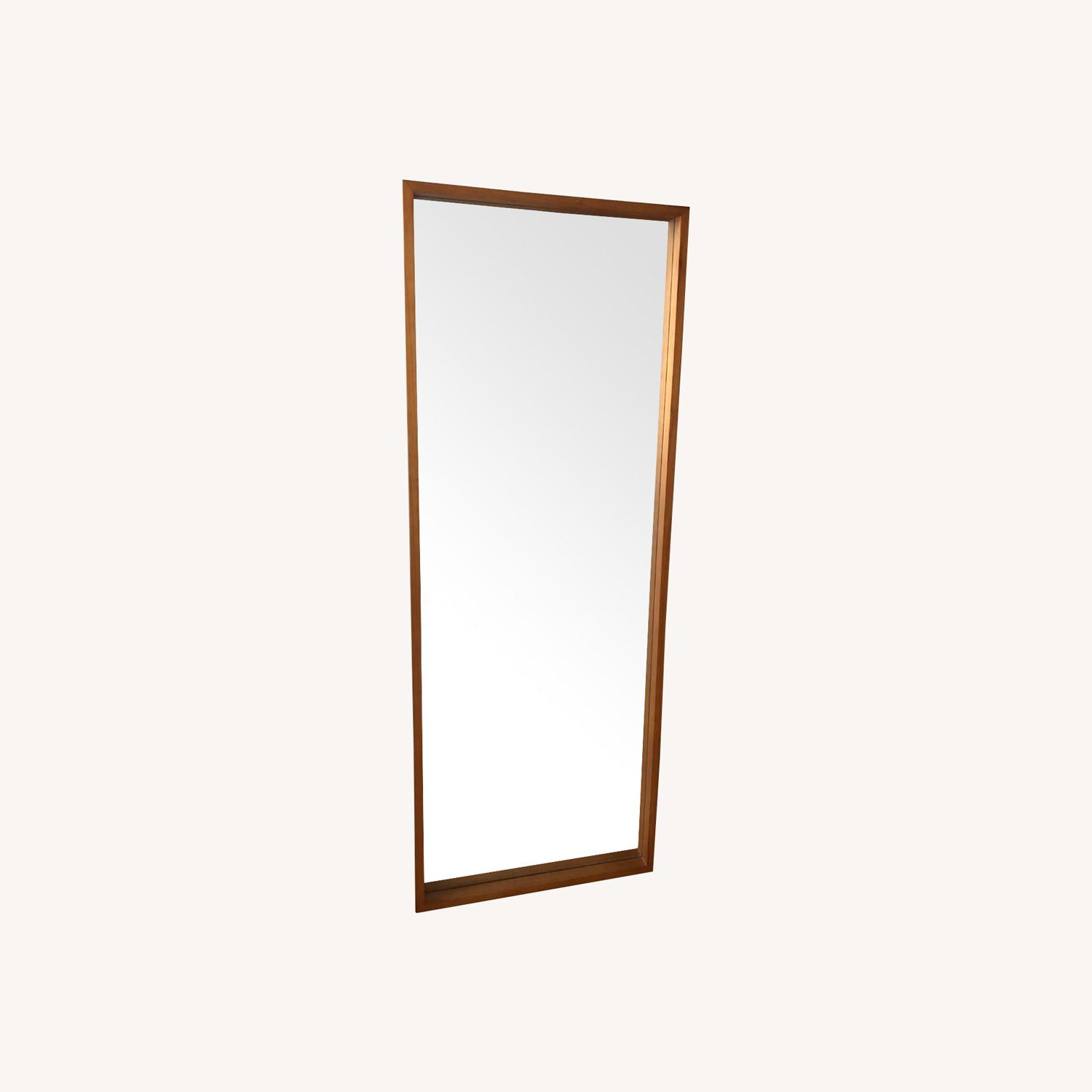 Seller's Notes:This floor mirror from Walmart's Drew Barrymore Flower Home collection features a brown wood frame with a rich woodgrain and warm finish, a kraft paper backing, and metal hangers attached to the back for hanging. The mirror has been gently used and is in excellent condition.
