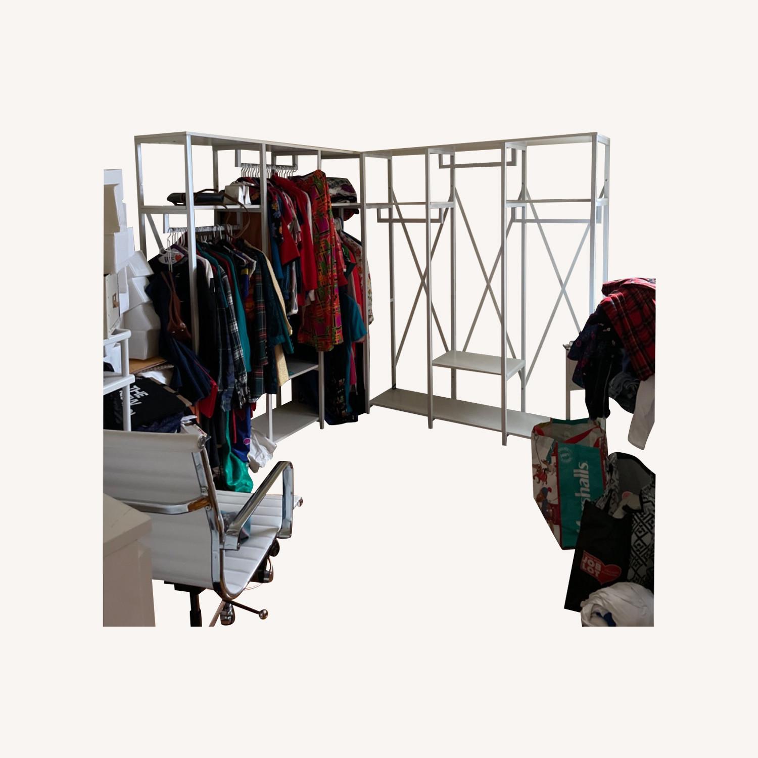 Seller's Notes:Sturdy, functional, and attractive free standing closet system. Purchased new and gently used for ~1 year, these are great for homes with limited closet space. Excellent storage capacity on shelves and garment racks, plus holds lots of weight. An excellent closet storage solution!