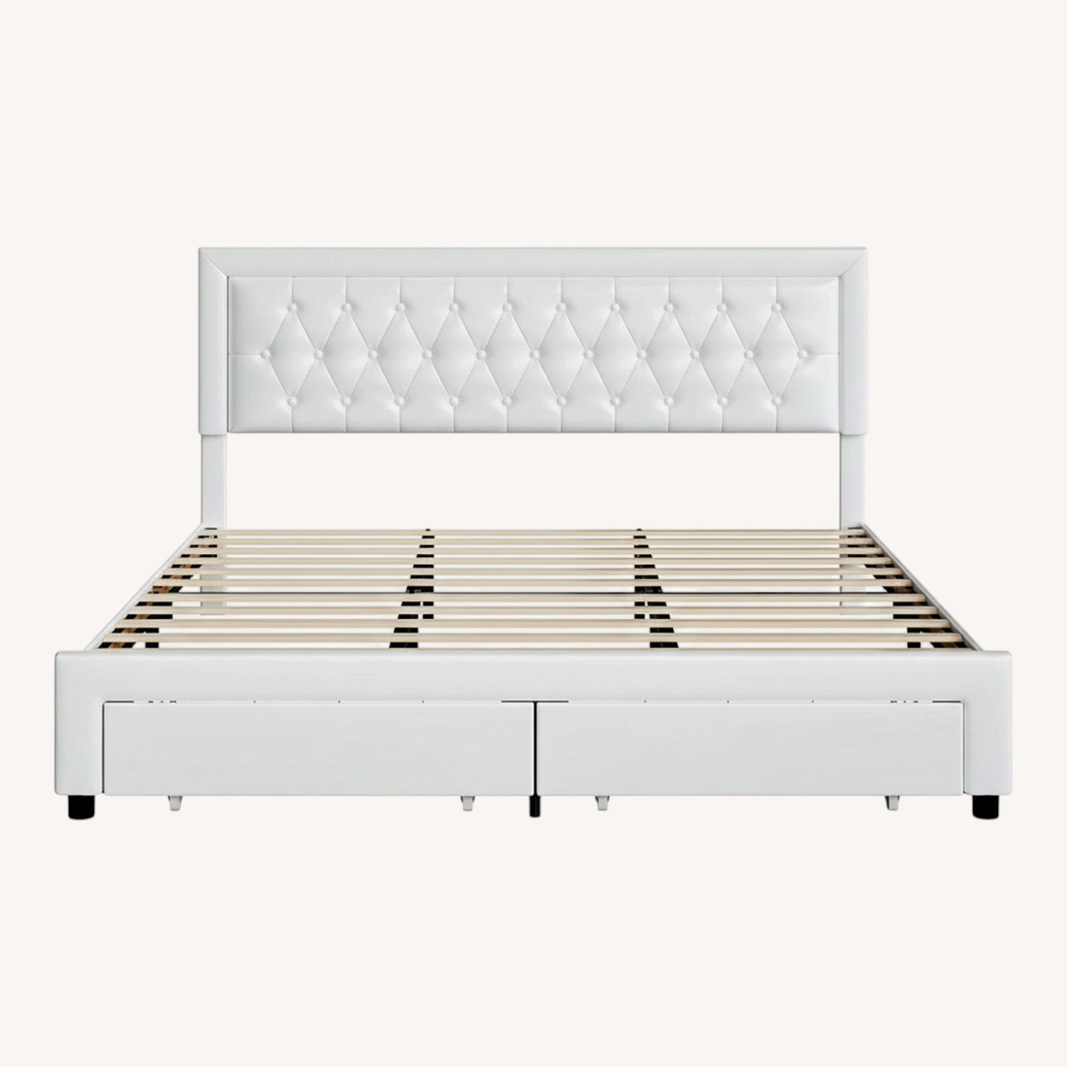 Seller's Notes:Homfa Queen Size Bed Frame with 2 Drawers, PU Leather Upholstered Platform Bed with Adjustable Button Headboard, Beige