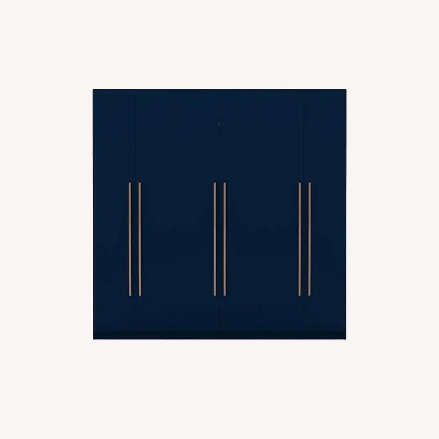 Seller's Notes:Closet: Crafted from MDF 3 cabinets with soft-close doors. Fixed shelving Four hanging rods 2 drawers Features: Made of MDF Aluminum hardware Modern, contemporary style 3 sections with soft-close hinges 4 fixed shelves 4 aluminum hanging rods 2 drawers Finished back Includes hardware Measures 81.3 inches high x 82.48 inches wide x 22.76 inches deep Country of Origin: Brazil Assembly Required