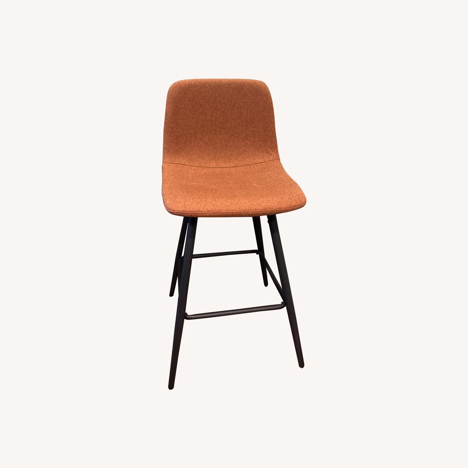 Round out your kitchen island or entertainment space in modern style with this 2-piece set of stools. Upholstered with polyester, the seats are made with robust wood to ensure durability, and the frames are made with solid steel in a black finish. Tight backs and an armless design strike a contemporary silhouette, while sleek splayed legs complete the look. We love that these stools have footrests that let you prop up a foot as you eat breakfast or enjoy a coffee.