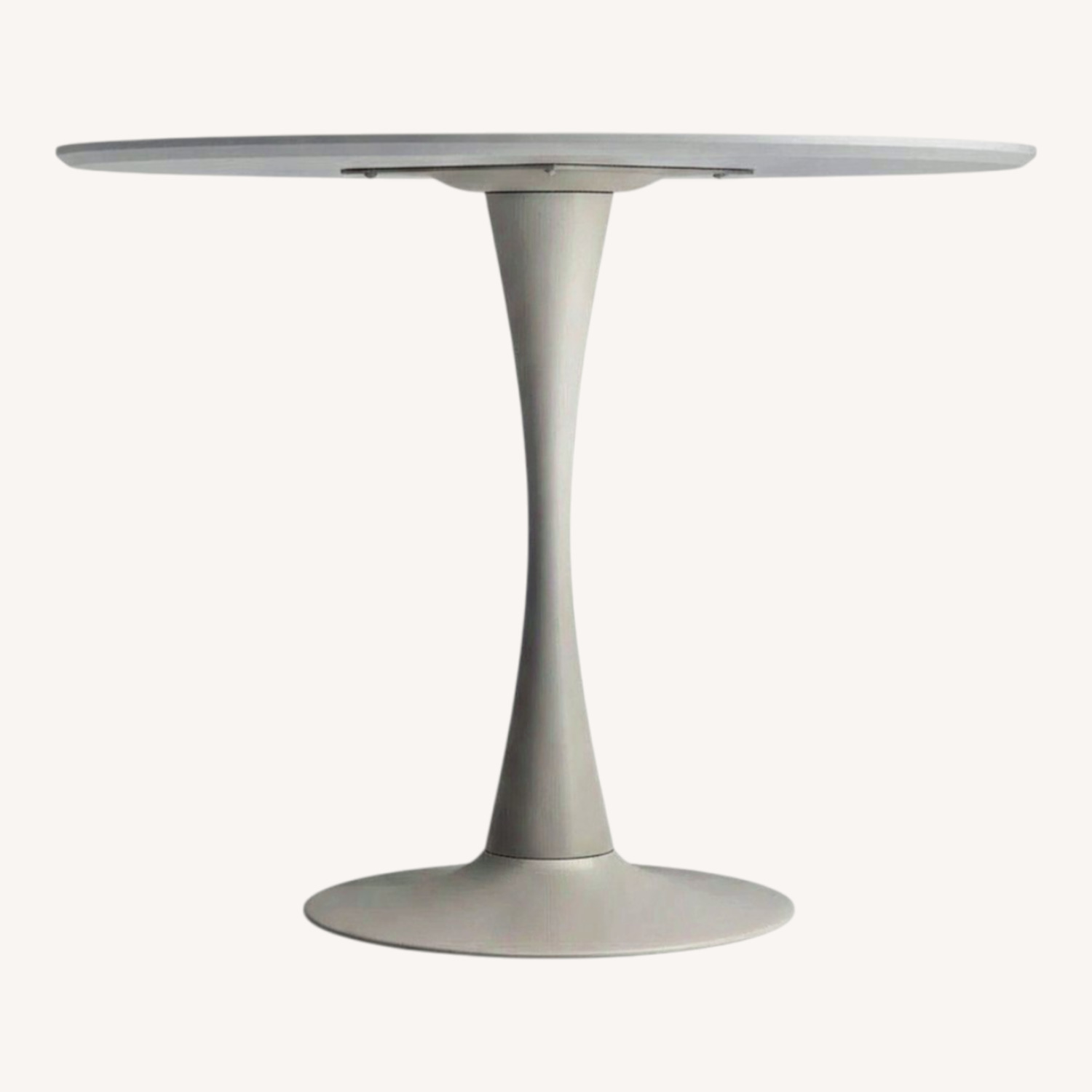 Inspired by the sleek, futuristic forms of 1960s design, this round dining table brings bold style to smaller dining spaces. Its mod silhouette features a circular engineered wood top set on a steel pedestal base for a clean, open look that maximizes legroom. A high-gloss lacquered finish adds a minimalist twist and modern polish. Seating up to four, it’s ideal for cozy meals, creative work sessions, or casual entertaining.