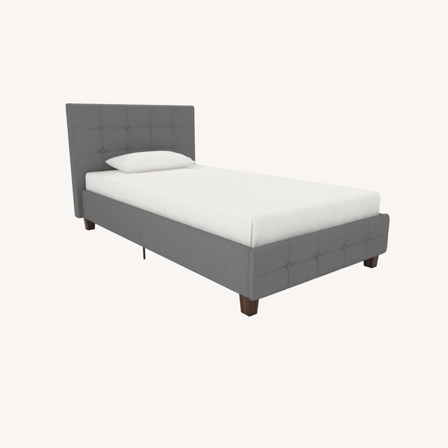 Seller's Notes:The master suite in need of a makeover? Or maybe you're gearing up for visitors in the guest room? No matter the restful retreat you're upgrading, this bed is the perfect place to start. Not only does it offer a spot to sleep, but it sets a stylish tone for your ensemble. Its metal and solid wood frame are clean-lined, while its upholstery ties it all together with button tufts and a solid hue. Features Included: Bed Frame Product Details Frame Material: Metal; Manufactured Wood; Solid Wood Box Spring Required: No Adult Assembly Required: Yes Compatible with Adjustable Bed: No Upholstered Upholstery Material: Polyester Blend