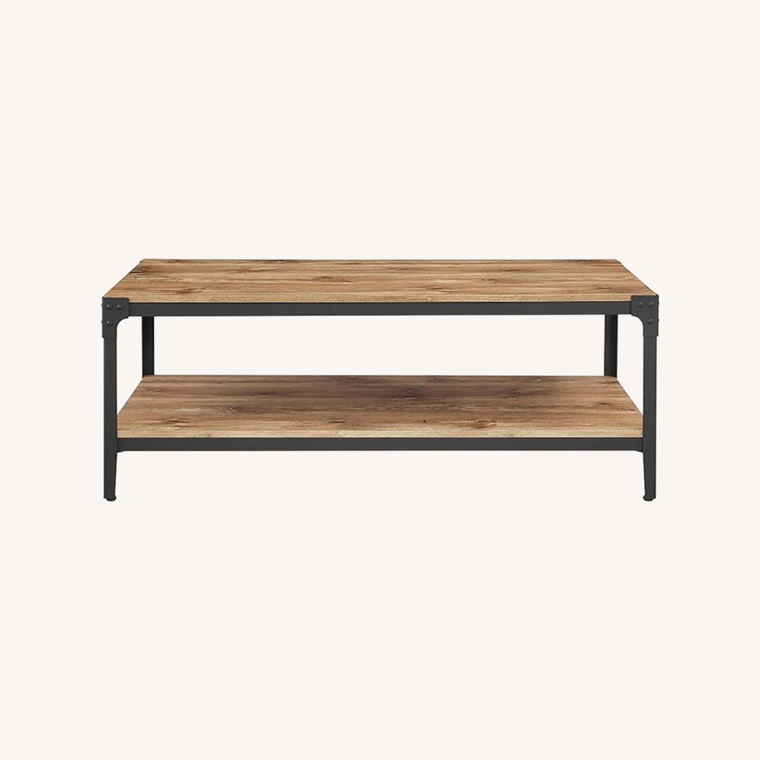 Seller's Notes:Industrial, modern coffee table. Sturdy and attractive. Small dent that happened during shipping when purchased. Wood tone is "barnwood" with black metal.