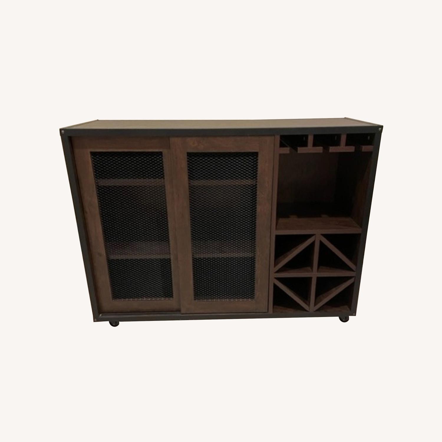 Seller's Notes:Dark brown, holds wine bottles and glasses.