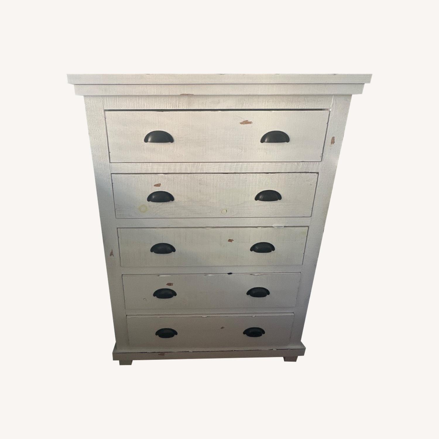 Seller's Notes:Tall 5 drawer dresser, part of a 3 piece set that is listed. Purchased in 2023 but only recently unboxed to find that it is too large for our space. Great piece with a lot of storage!