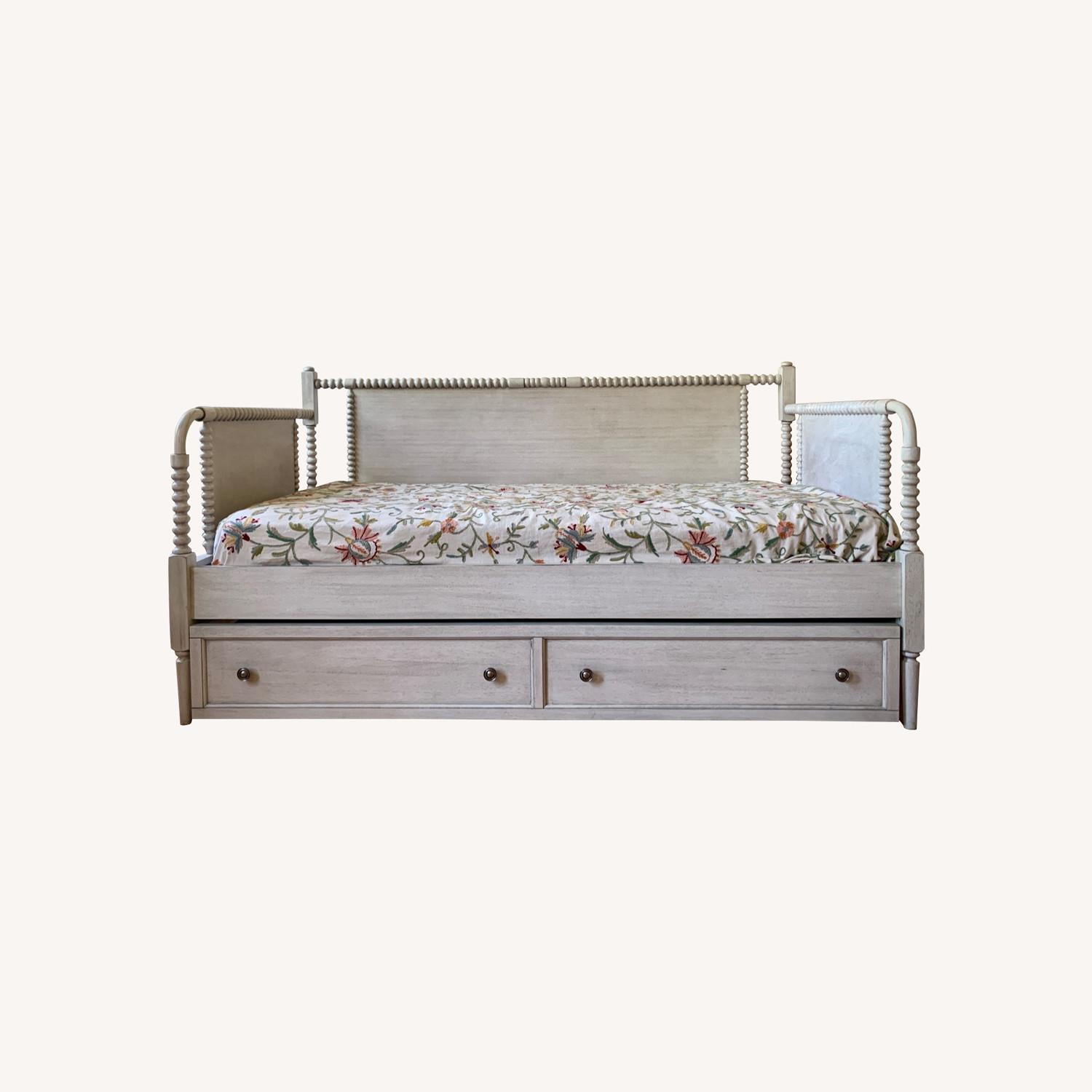 Seller's Notes:Gorgeous wood daybed with trundle. It served us well in the living room and was a favorite sitting place for guests. With the trundle it can host two overnight visitors. We're moving now and have to let it go. Hope you can enjoy it in your home!