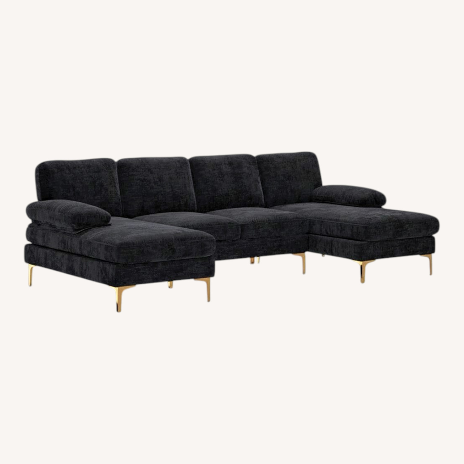 This 3-piece sectional sofa brings a glam vibe and plenty of comfort to your living room. Chenille upholstery feels inviting and adds a plush look to any spot in your home, while gold-finished bracket metal legs enhance this sectional's modern appeal. Designed for small spaces, this modular sectional can easily accommodate four people, making it great for entertaining guests or enjoying a cozy nap. The foam-filled seat and back cushions offer a supported seat. Plus, the easy-to-remove armrests give you extra elbow room whenever you need it.
