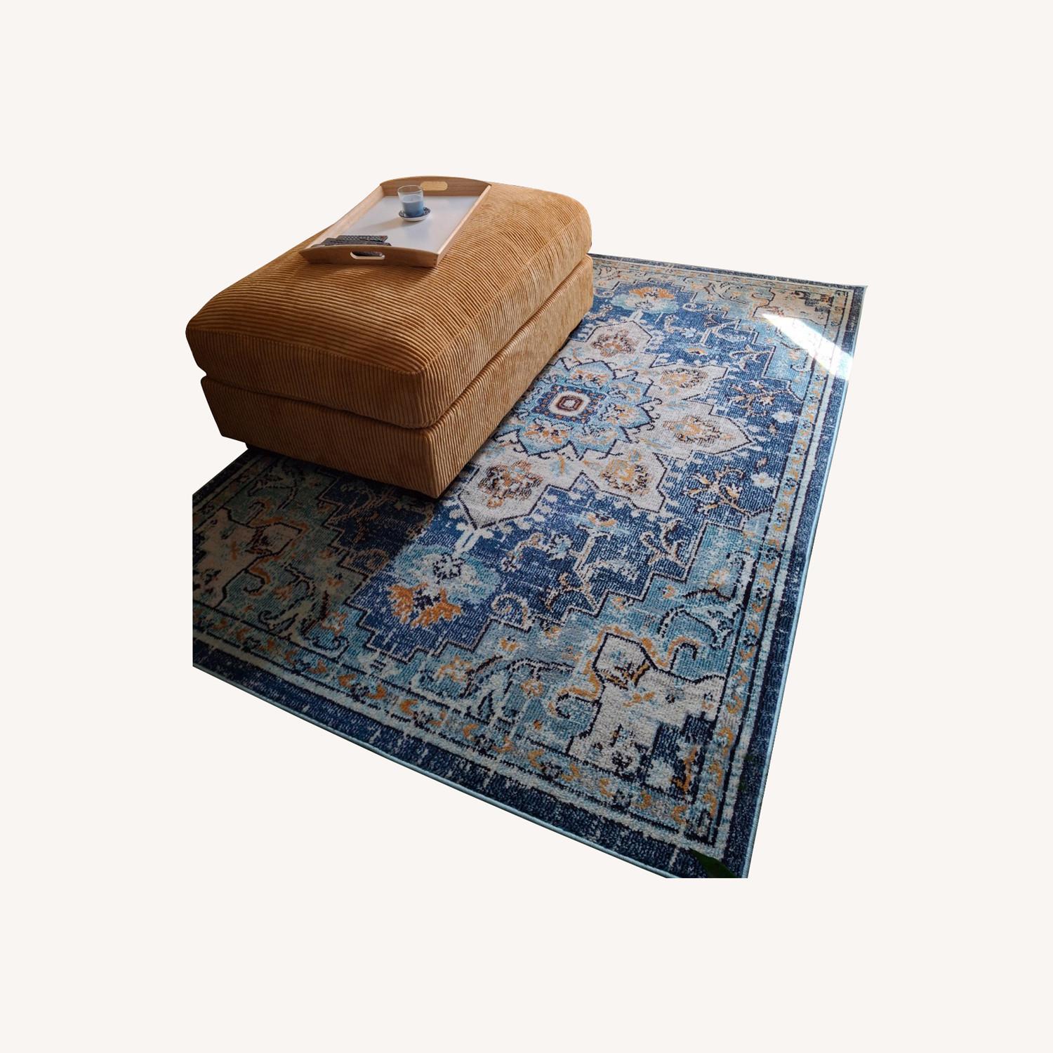 Wayfair Blue, Gold, Teal and Cream Area Rug 5X7