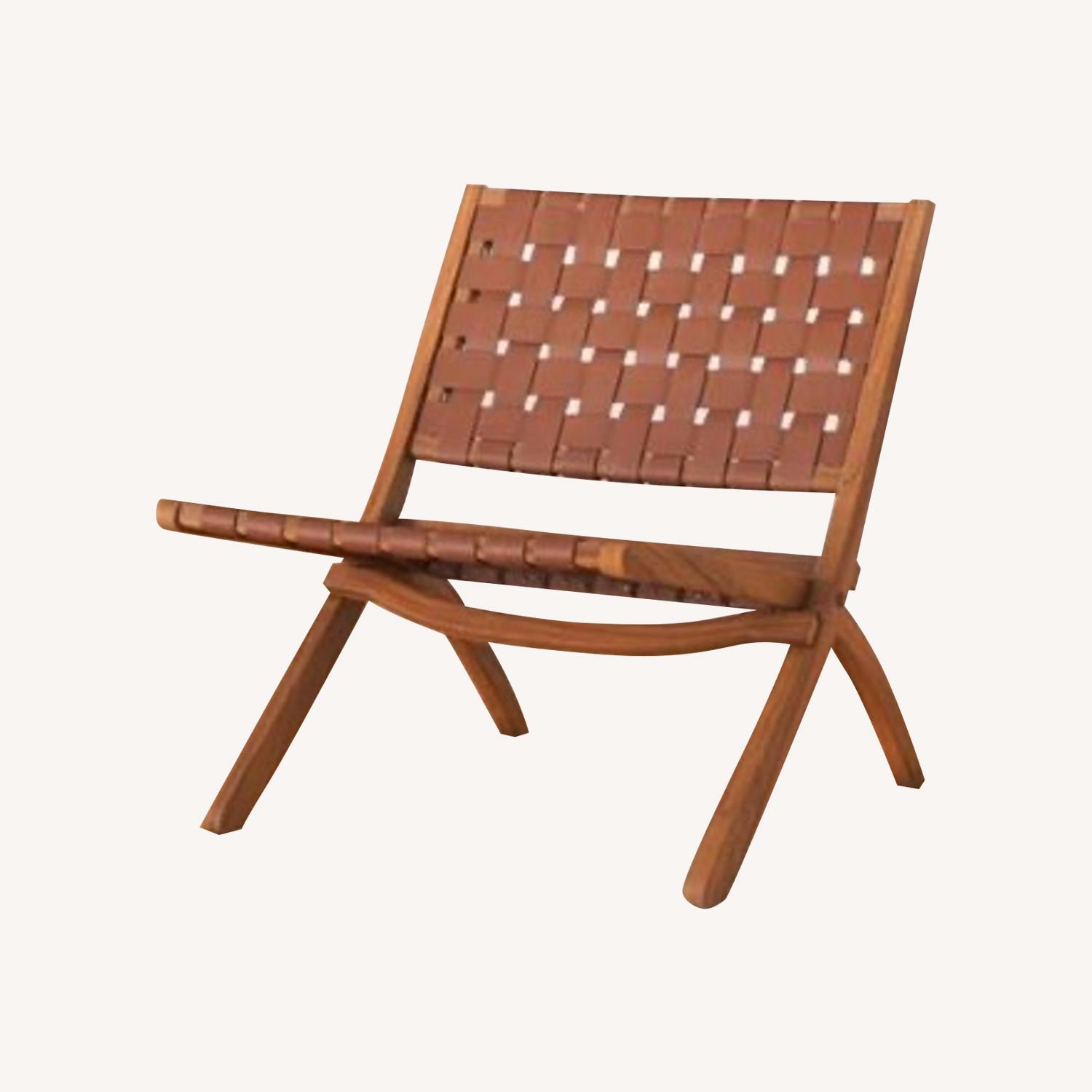 Seller's Notes:This folding chair is made with a solid rubberwood frame and has a striking design with super fino legs and a streamlined, open seat. The seat itself is made with a woven design and has strips of leather latticed together to create an airy, Scandi-inspired look. This interwoven brown leather accent chair measures 22'' wide and is extremely versatile fashion making it the perfect addition to your living room, entryway, or bedroom.