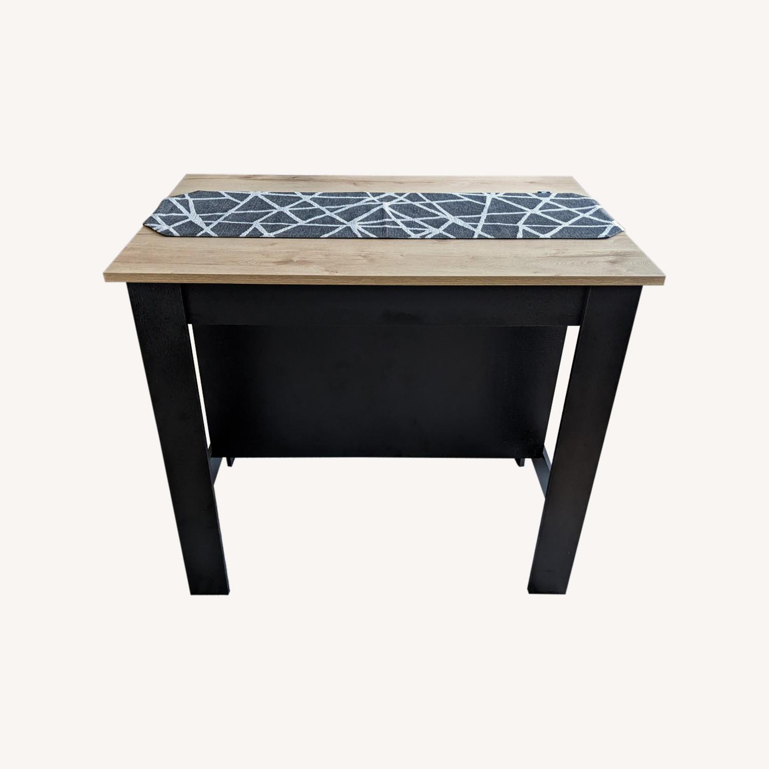 Seller's Notes:Gently used kitchen island in great condition. Decorative runner included if interested. A clear workspace and display shelf are offered by the broad tables. One side of the table has two shelves beneath the top for extra storage (12"H x 12"D x 38"L). Pots, pans, and culinary utensils can all be displayed on the bottom shelf, which is divided into two equal sections. You can sit comfortably to prepare your meals on the other side, which is set up as a workstation with plenty of legroom.
