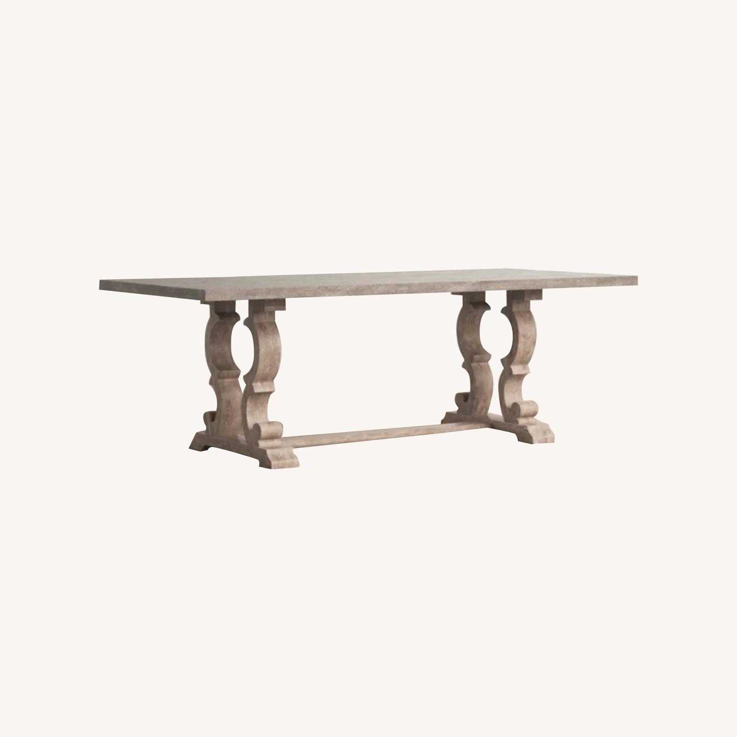 Seller's Notes:The natural tone finish dining table with the trestle base is made elegant with the S-shaped side posts and 18" table leaf. Top Material - Solid + Manufactured Wood. Maximum Expanded/Extended Length - End to End - 90''. Maximum Expanded/Extended Depth - Front to Back - 40''. Distance between the legs of the dining table - 45.25"