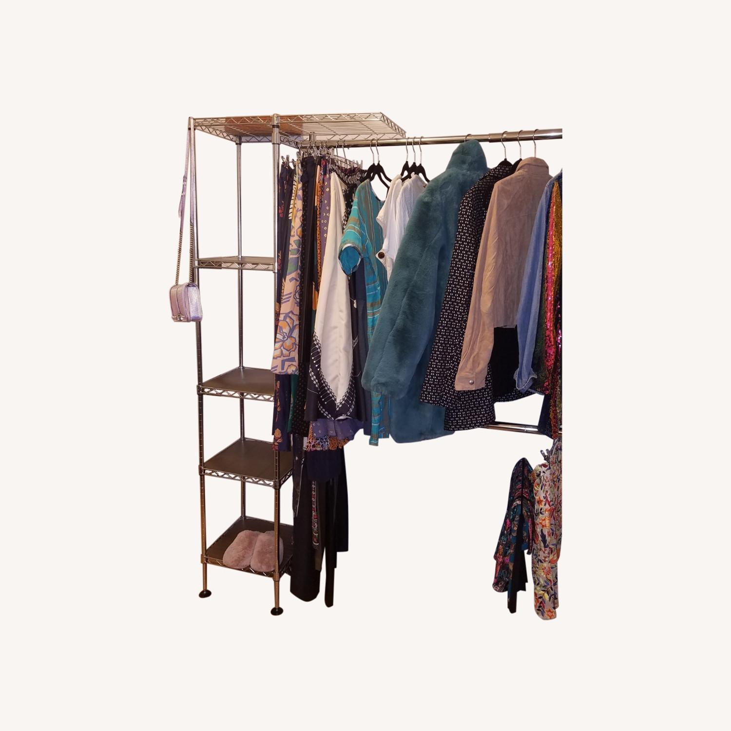 Seller's Notes:Corralling clothing in your closet just got easy thanks to this convenient closet system! Crafted from steel, this design features a sleek finish and measures 72'' H x 14'' D with an adjustable width spanning 58'' to 83''. Ten shelves along the sides are ideal for holding everything from shoes to spare blankets, while a pair of rods let you hang up blouses and jackets to keep them wrinkle-free.