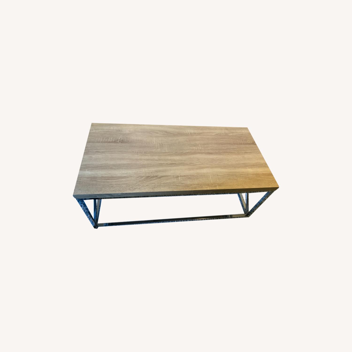 Seller's Notes:Metal and wood veneer coffee table Light natural wood Very little used Good condition Very slight scratch on one of the corners - barely visible