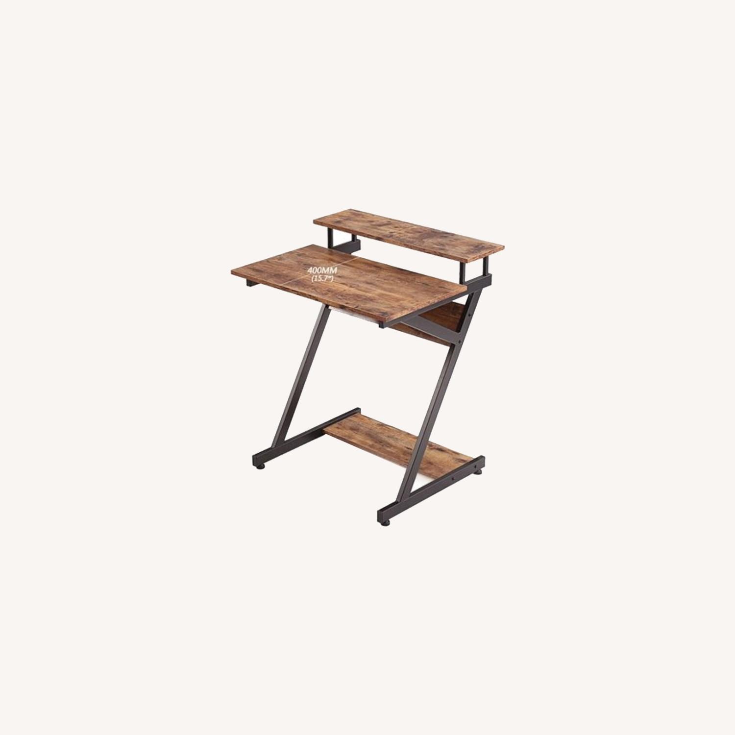 Seller's Notes:Brown computer desk with top shelf that can fit monitor and bottom shelf for storage. Sturdy but compact and lightweight, perfect for a smaller space or apartment work from home set up. Brand new, barely used, have had for two months but am moving out of state.