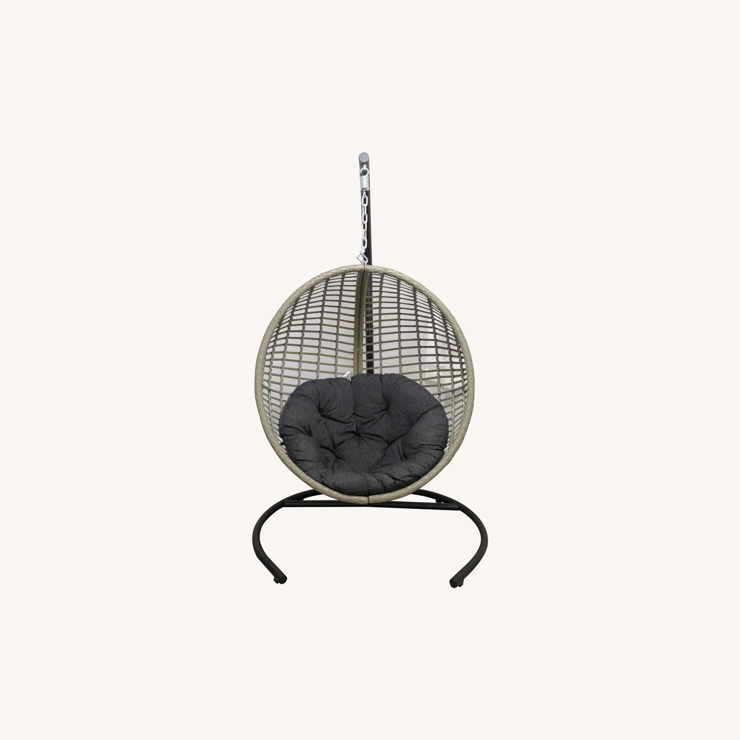 Seller's Notes:This swing chair is less than a year old. Purchased from Wayfair in February 2022. Still in good condition and has not been sat in often. The cushion was said to be black but it looks dark gray and the actual chair looks a bit green. Can't remember the exact weight limit (I think it's 400 lbs) but I'm 225 and it holds me well.