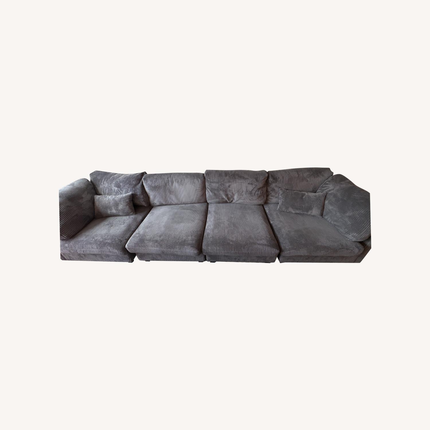 Seller's Notes:Less than one year old, corduroy sectional which can be arranged in different configurations. Very comfortable and barely worn. See Wayfair link for original listing.