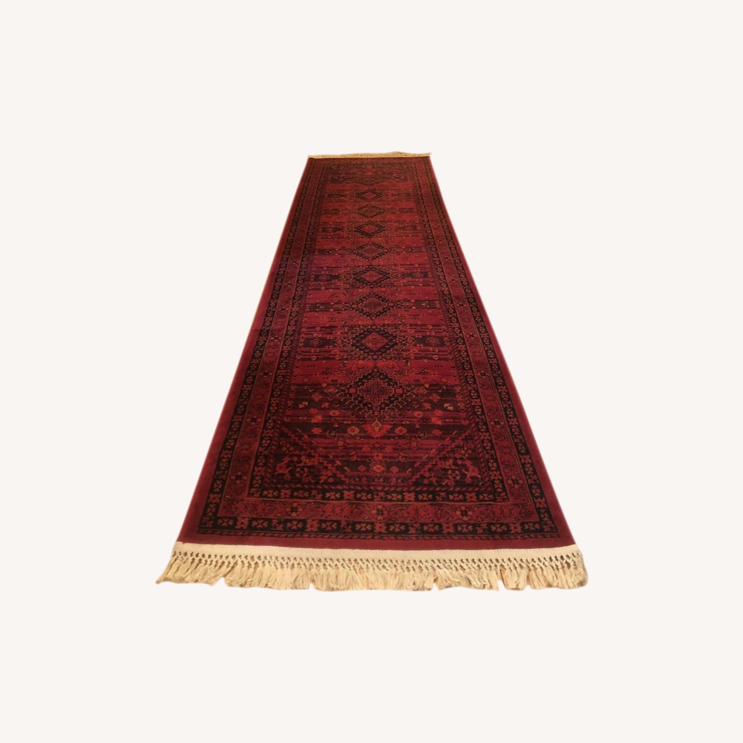 Seller's Notes:Great, 1 month old, like-new elegant Turkish runner. Beautiful deep red, soft to the touch. Doesn't fit in our hall the way we had hoped. (Note: we have a older dog who lives with us, but he doesn't often walk upstairs in the hall where we tried to place the rug.) Happy to send more photos/answer any more questions.