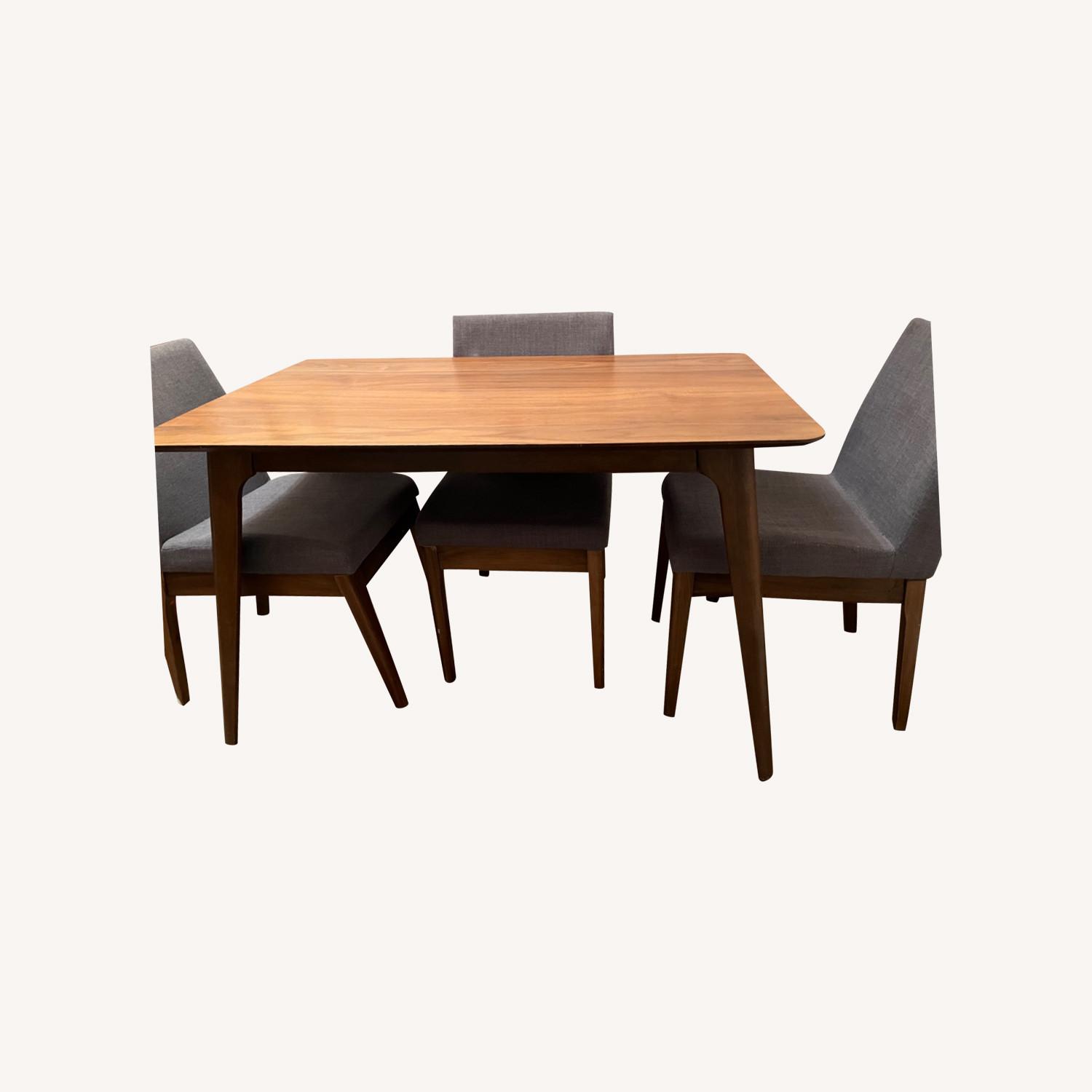 Seller's Notes:The dinning table and chairs are purchased from wayfair about 1 year ago. It is in great condition and comes with 4 chairs that are blue fabric.
